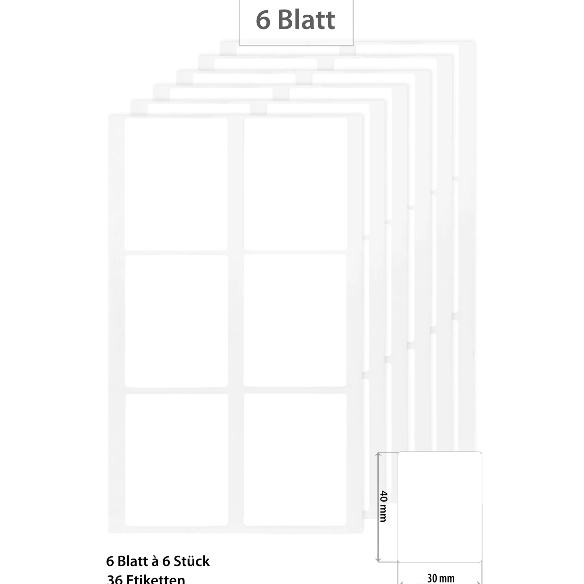 36 Stück (6 Bogen mit je 6 Etiketten)