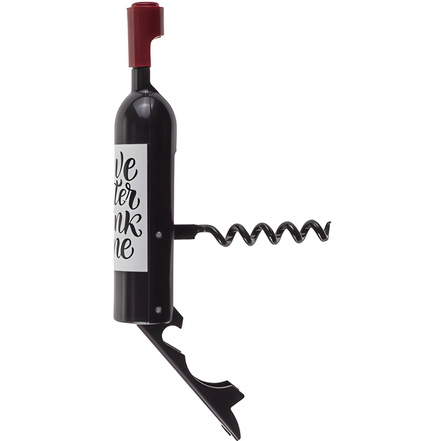 Vielseitiger Flaschenöffner, der praktisch und gleichzeitig für gute Laune sorgt. Dieser besteht aus Kunststoff und hat die Form einer Weinflasche.