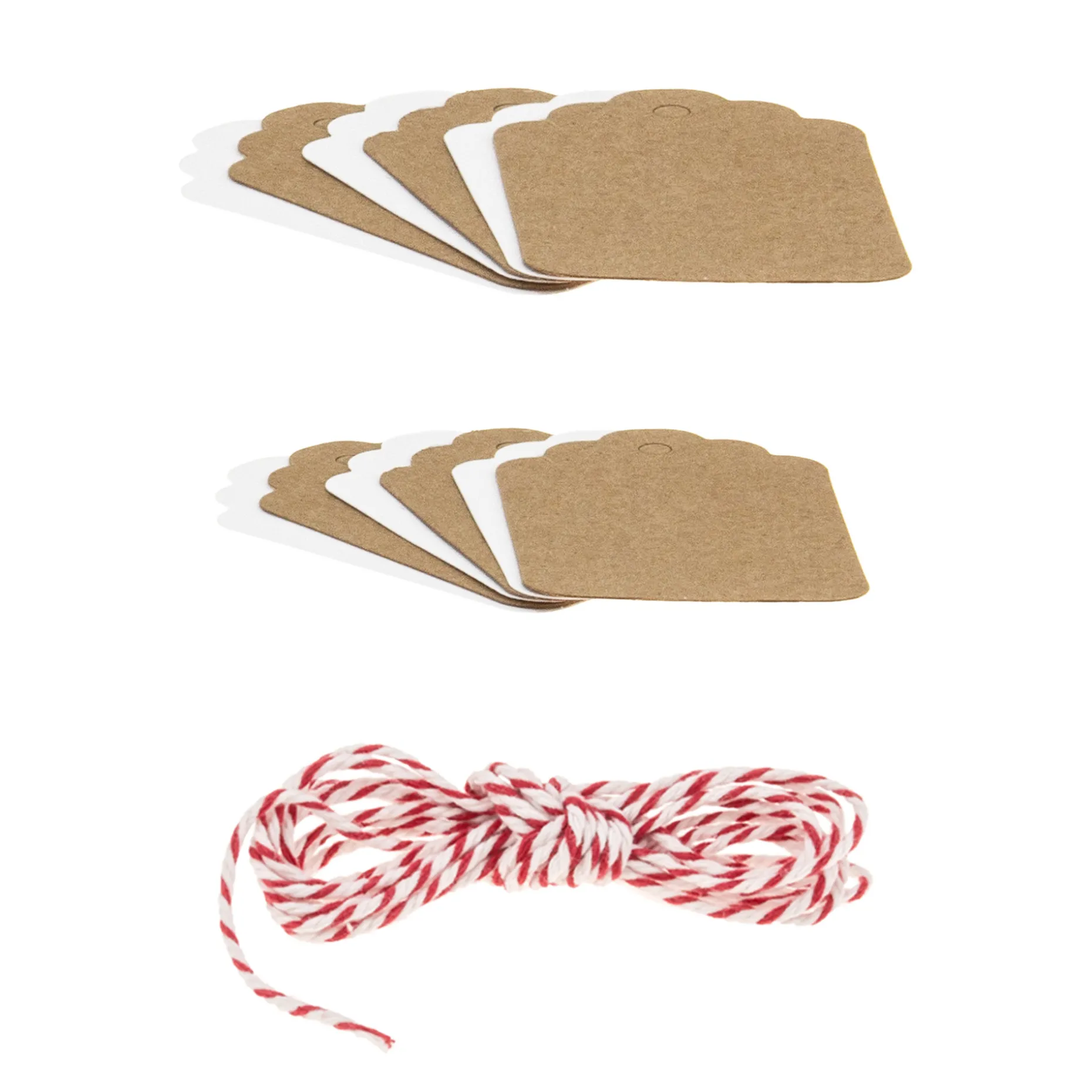 12 hübsche, nostalgische Anhänger in jeweils zwei Größen zum Beschriften und Dekorieren, inkl. 2 m Schnur.