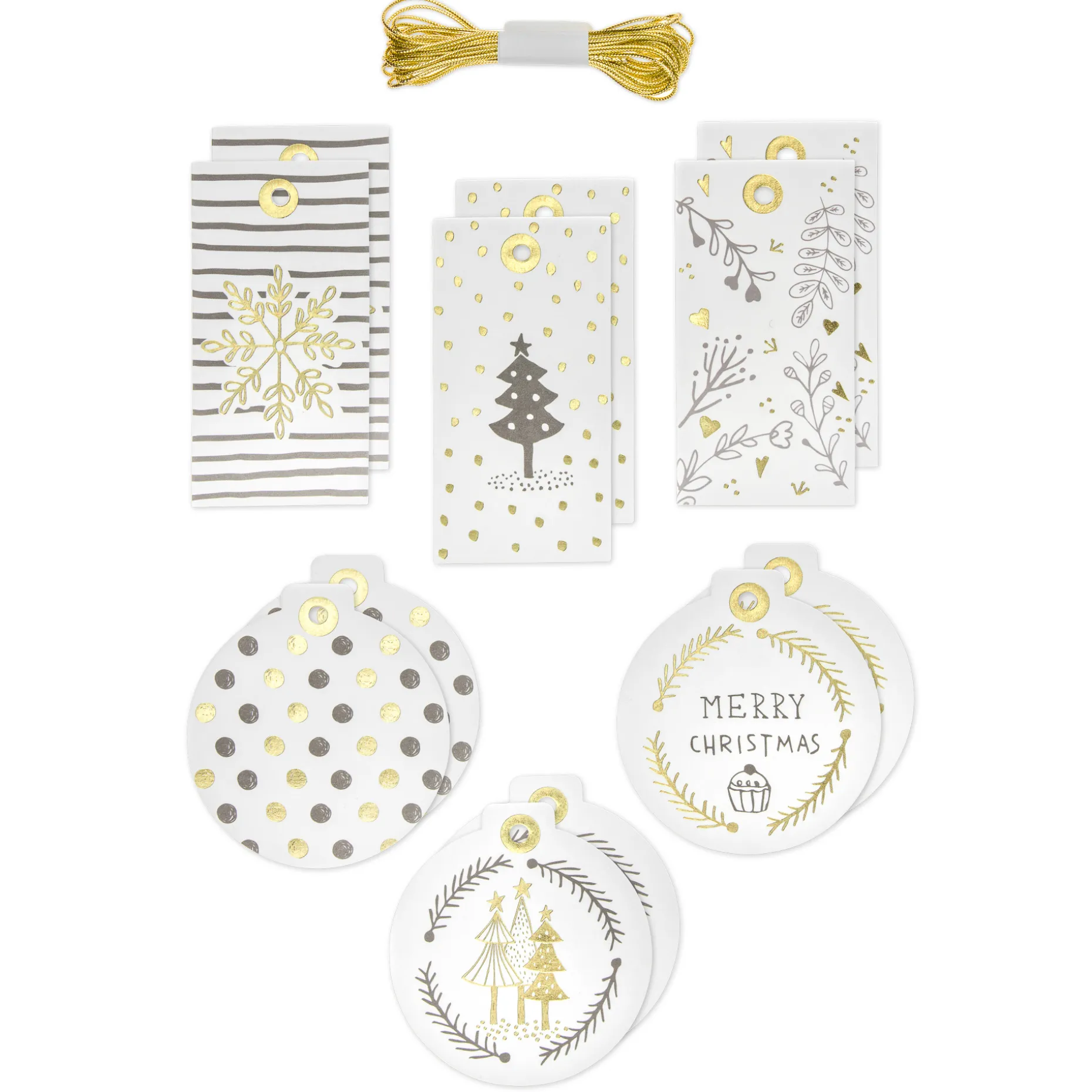 Die Kombination aus dekorativem Gold, edlem Weiß und festlichen Mustern machen aus diesen Anhängeetiketten etwas ganz Besonderes. Gleich 2 verschiedene Formen mit 6 unterschiedlichen Motiven befinden sich in einem Paket, so können Sie Geschenke abwechslungsreich und dennoch stimmig beschriften. Die Rückseite der Geschenkanhänger kann mit Namen oder Grüßen versehen werden und mit der beiliegenden goldenen 3 m-Schnur können Sie die edlen Anhänger an Flaschen oder Gläsern befestigen.