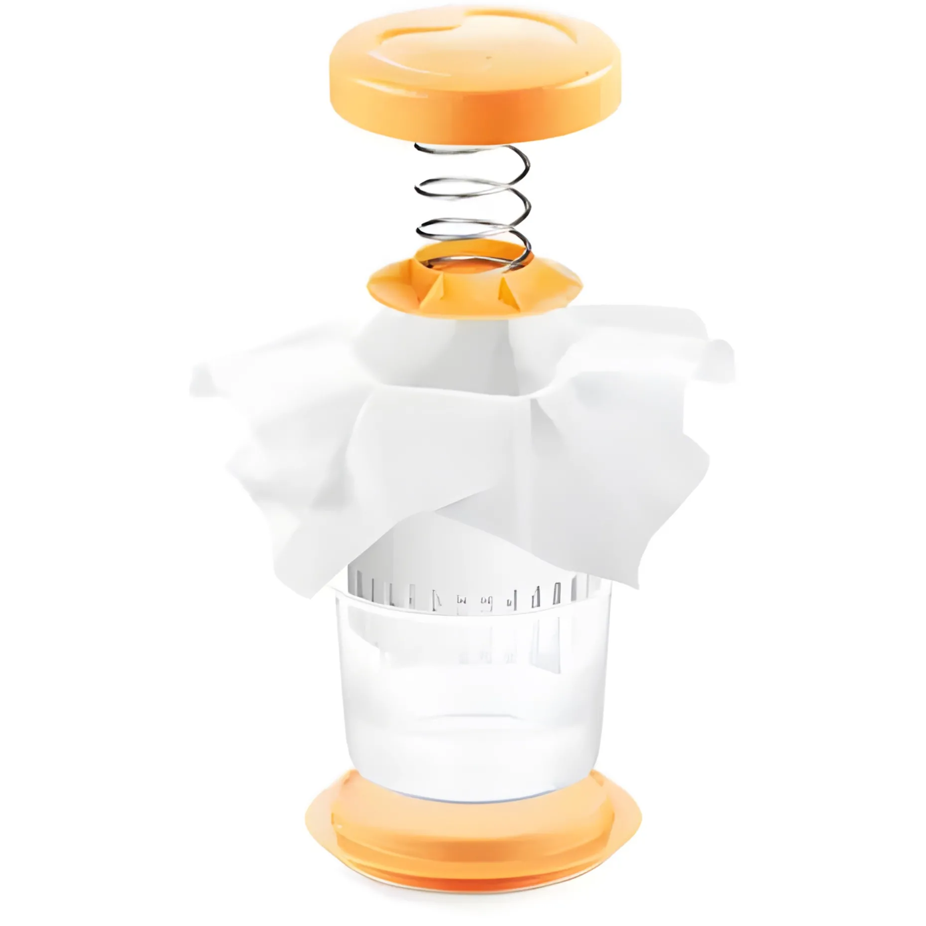 Das Set besteht aus einem rutschfesten Unterteller mit Auffangbehälter, die nach Fertigstellung für den Käse als Unterlage mit Haube zum Servieren und Aufbewahren dienen. Fünf wiederverwendbare Passiertücher, eine Siebdose mit Pressscheibe, Feder aus rostfreiem Edelstahl und Schraubdeckel komplettieren das Set aus robustem Kunststoff, dass bitte per Hand gespült werden sollte.