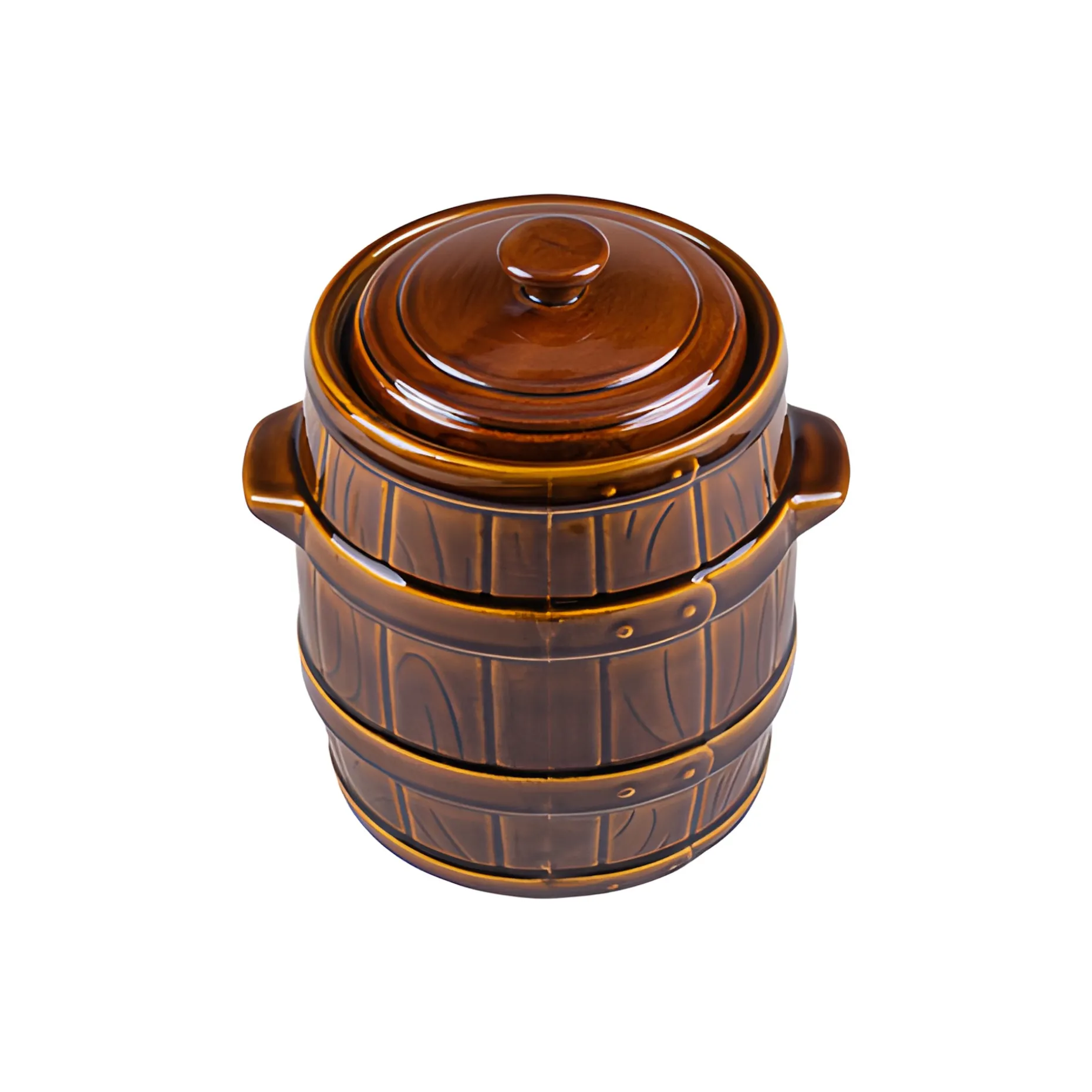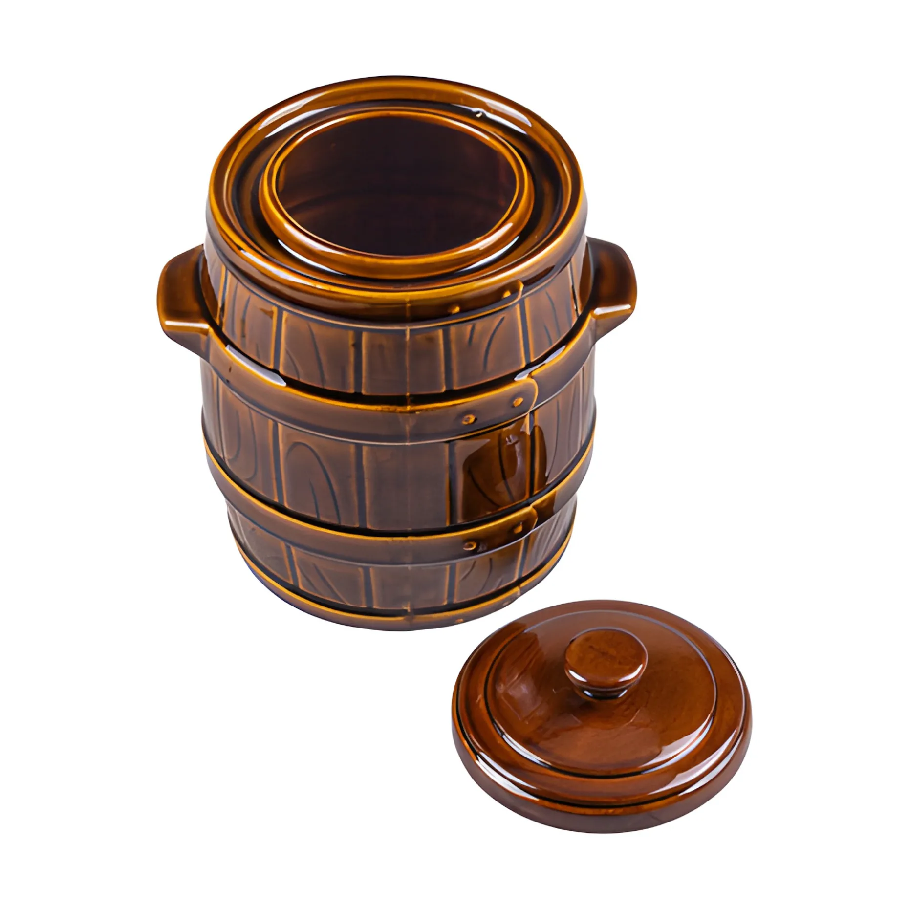 In diesem klassischen Gärbehälter mit Deckel können Sie jetzt leckeres und gesundes Sauerkraut ganz einfach selber herstellen. Der Alleskönner aus Keramik/Steinzeug hat eine Wasserrinne, die dazu dient den Topf luftdicht zu verschließen. Die seitlichen Henkel verleihen dem fassförmigen Gefäß einen einzigartigen, traditionellen Charakter und erleichtern zudem das Umsetzen und den Transport. Ob zum Einlegen von Obst, Gemüse oder Gurken, zum Fermentieren von Kraut sowie auch zum Ansetzen von einem fruchtigen Rumtopf oder Likören, dieses glasierte Fass eignet sich einfach perfekt zum Aufbewahren und Verarbeiten von Lebensmittel und ist zudem eine Zierde in Küche und Vorratskammer. Der Gärtopf wurde aus natürlichen Materialien hergestellt, ist lebensmittelgeeignet und säurebeständig.