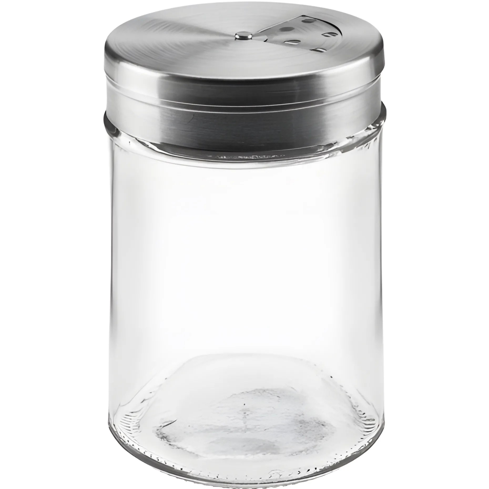 Multifunktionsstreuer aus Glas mit zweiteiligem Deckel aus gebürstetem Metall. Das große Gewürzglas eignet sich für Kräutermischungen, Salz und als Streuer für Kakao und Puderzucker. Im Verschluss integriert sind Streuöffnungen in drei Größen, die durch Drehen des oberen Teils stufenlos eingestellt werden können. Die Löcher können selbstverständlich auch abgedeckt und Gewürze so im Vorratsschrank aufbewahrt werden. Ein praktischer Küchenhelfer in zeitlosem Design.