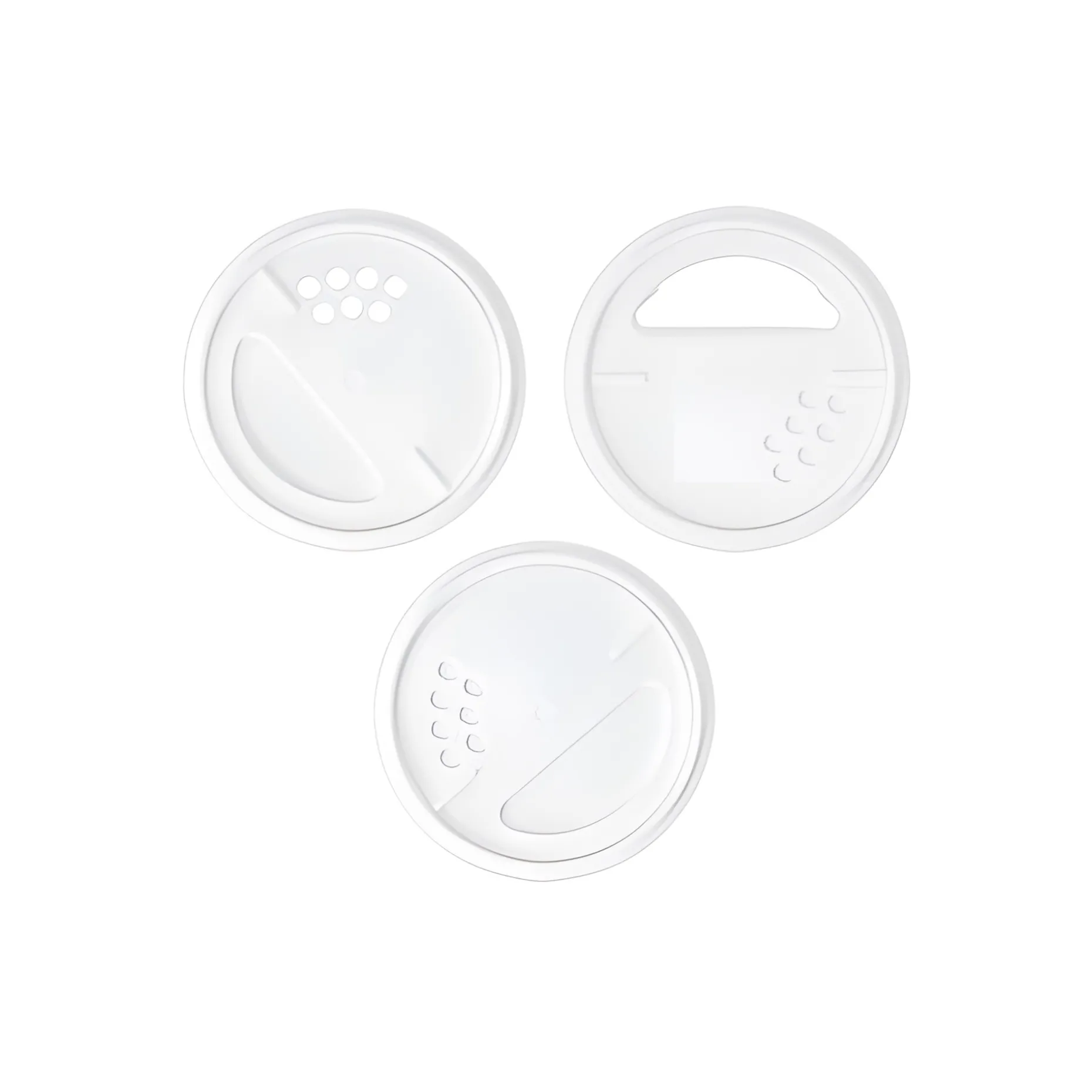 Leichte Gewürzdose aus Kunststoff mit Streuverschluss, der fest auf der Dose aufgesteckt wird.