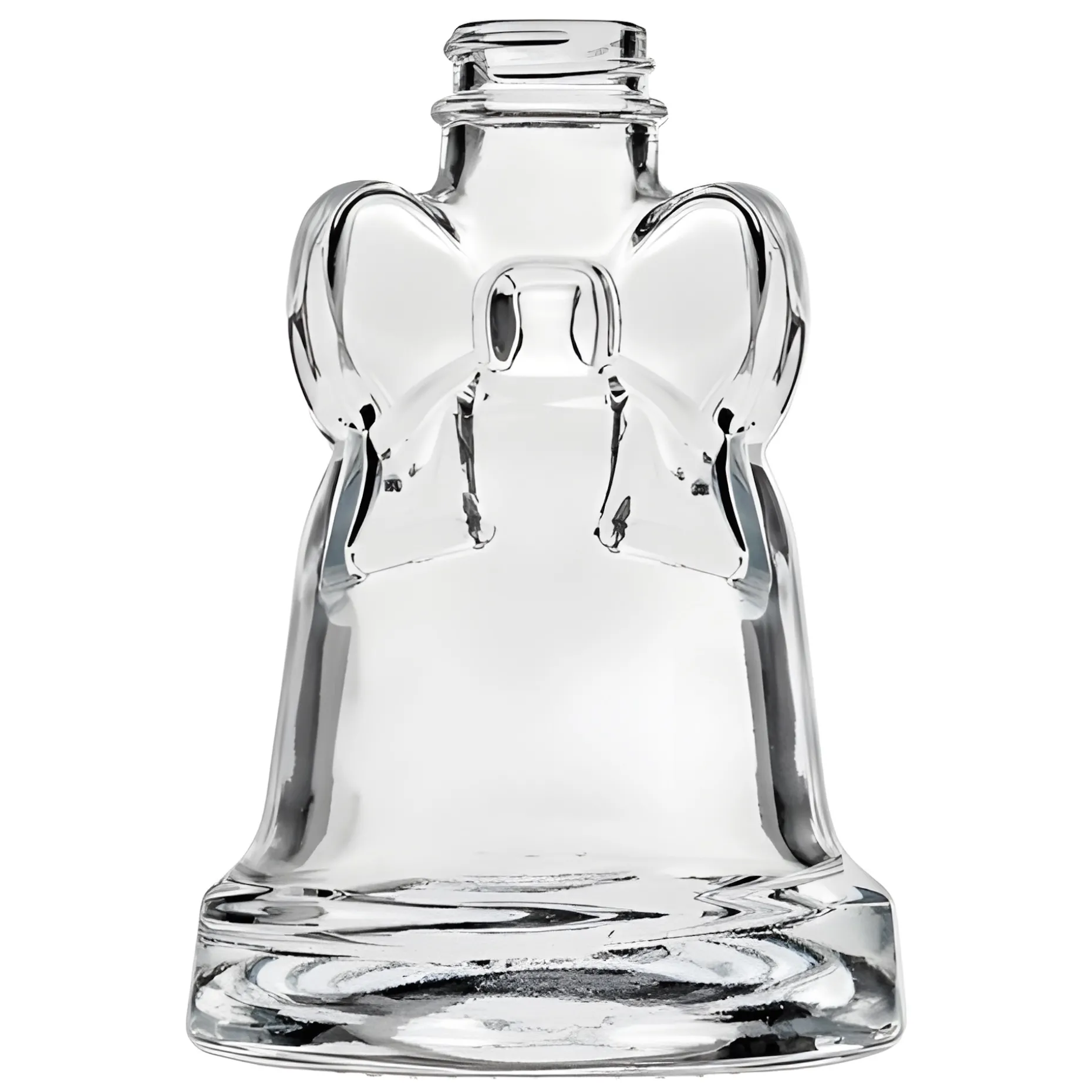 Die hübsche Glasflasche hat die Form einer Glocke, die von einer plastisch gestalteten Schleife verziert wird. Dadurch wird sie zu einer ausgefallenen Geschenkflasche, die mit einer selbstgemachten Köstlichkeit befüllt, viel hermacht. Besonders schön kommt sie zur Geltung, wenn man einen Inhalt in kräftigen Farben wählt, wie z. B. roten Granatapfelsirup oder goldgelben Orangenlikör. Die Flasche hat einen kurzen Hals mit einer GPI-Mündung für einen entsprechenden Schraubdeckel, wodurch sie sich luftdicht und auslaufsicher verschließen und prima transportieren lässt. Durch den schweren Boden hat sie einen sicheren, stabilen Stand und ein kompaktes, hochwertiges Aussehen.