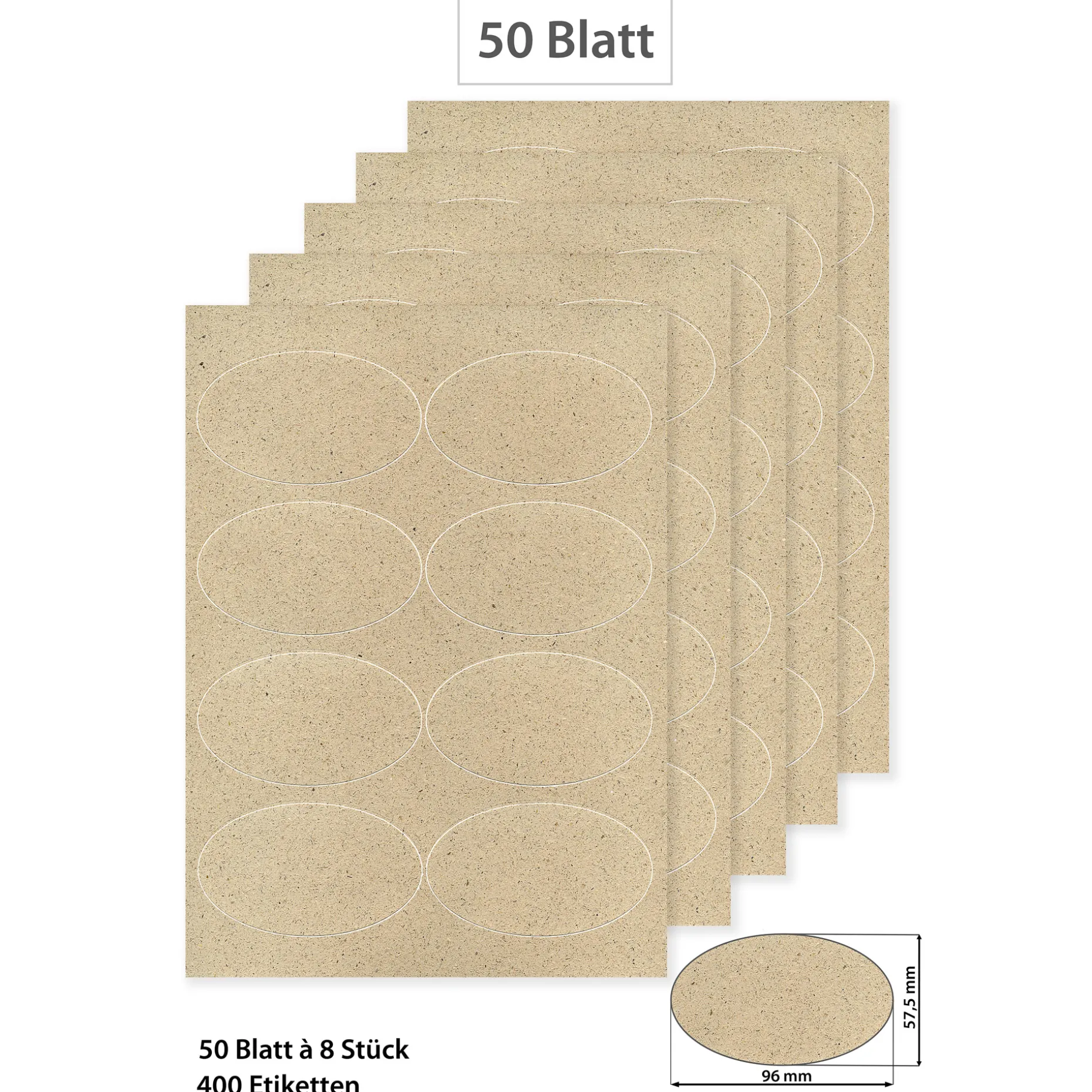Informationen zum Artikel: Grasetiketten oval 96 x 57,5 mm, 50 Blatt A4, 400 Stück