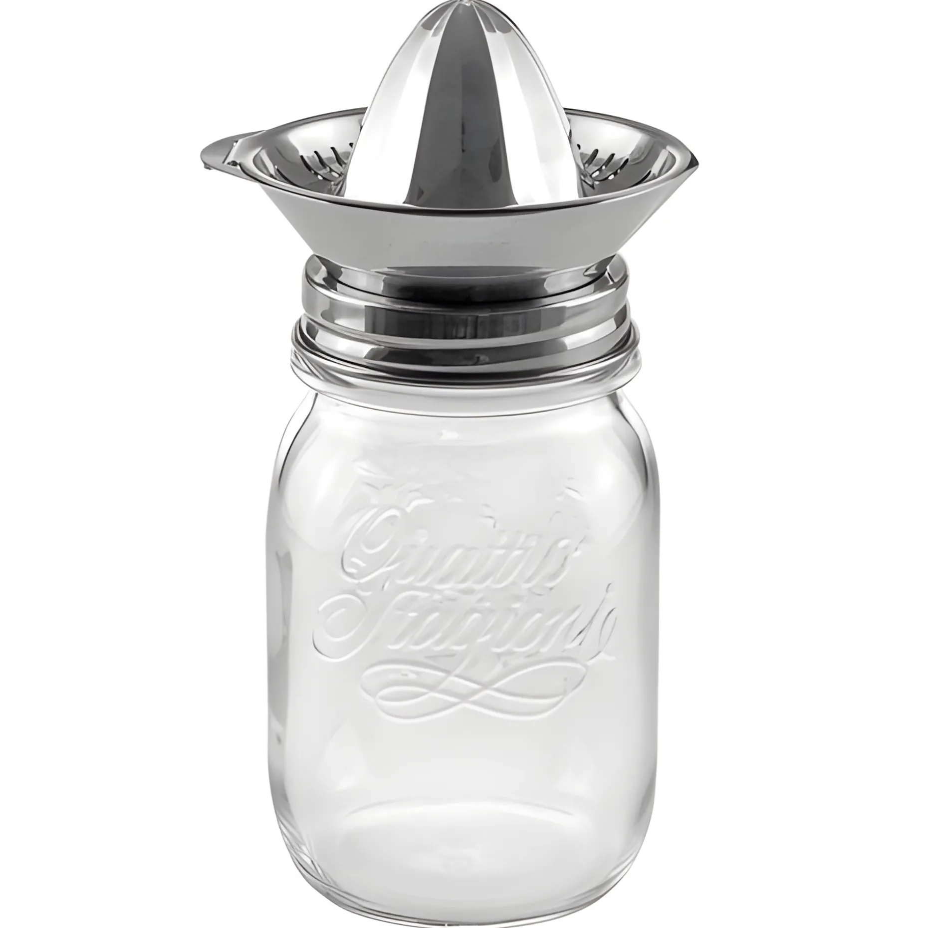 Frisch gepresster Orangensaft direkt ins Glas mit einer stilechten Saftpresse. Mit diesem Küchenhelfer können Sie den Saft einer Orange, Pomelo oder Grapefruit ganz einfach auspressen, den Schraubdeckel abnehmen und den Saft direkt aus dem Glas trinken.