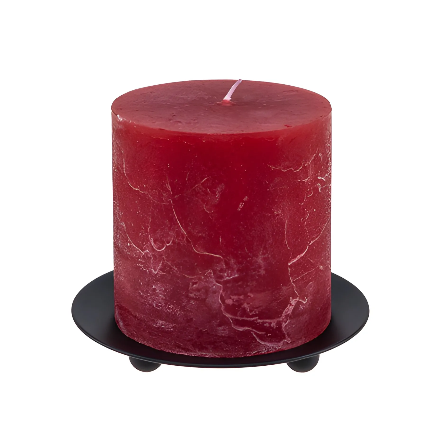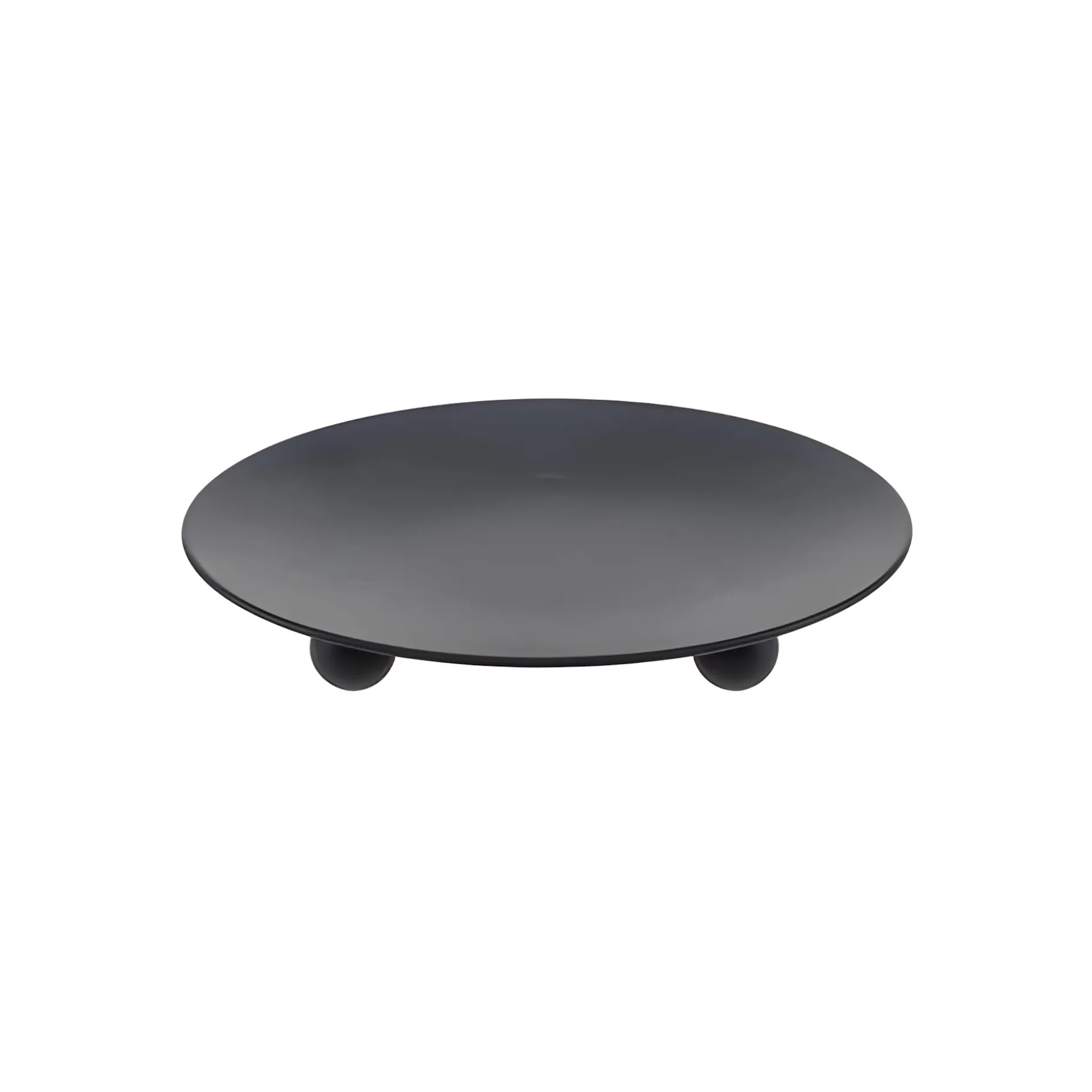 Der schwarze Metallteller steht auf drei niedrigen Füßen und hat eine leicht gewölbte, runde Fläche von 12 cm für eine Stumpenkerze. Auch runde Gläser mit einer Kerze, Teelichter und Windlichter können darauf effektvoll platziert werden. Das matte Schwarz des Tellers bildet einen schönen Kontrast zur Transparenz der Gläser und lässt sie wirkungsvoll zur Geltung kommen.