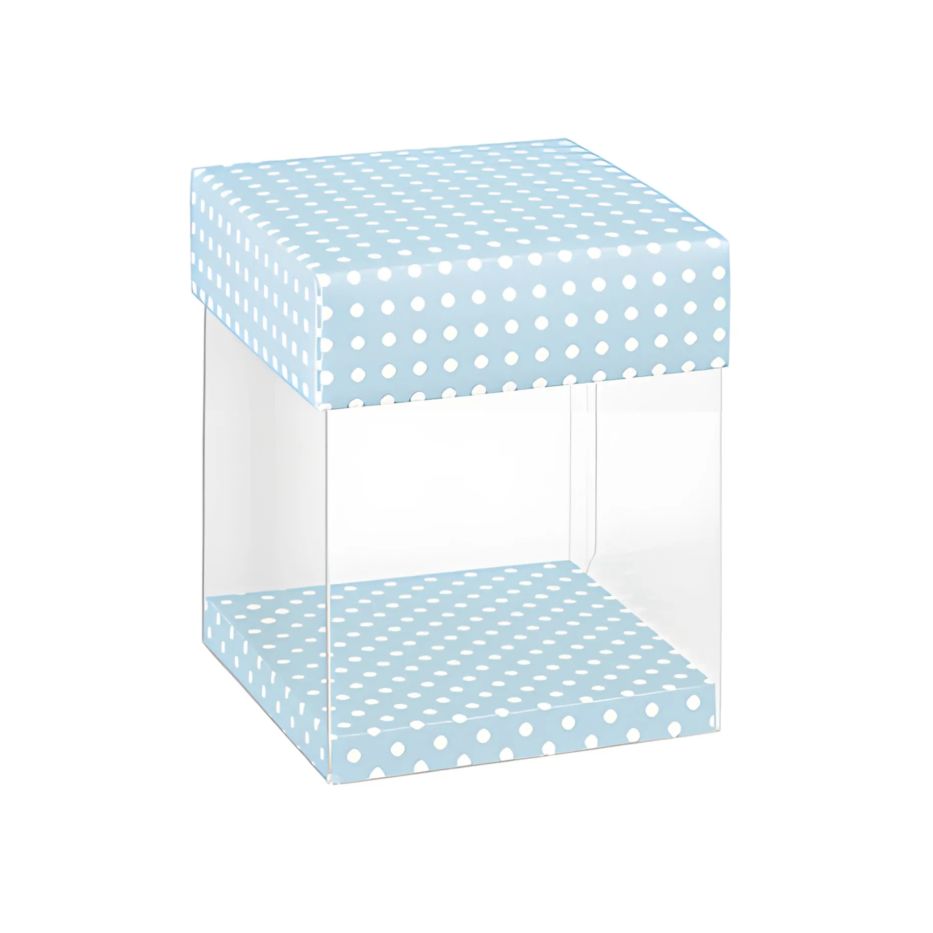 Informationen zum Artikel: Klarsichtschachtel 80 x 80 x 90 mm blau gepunktet