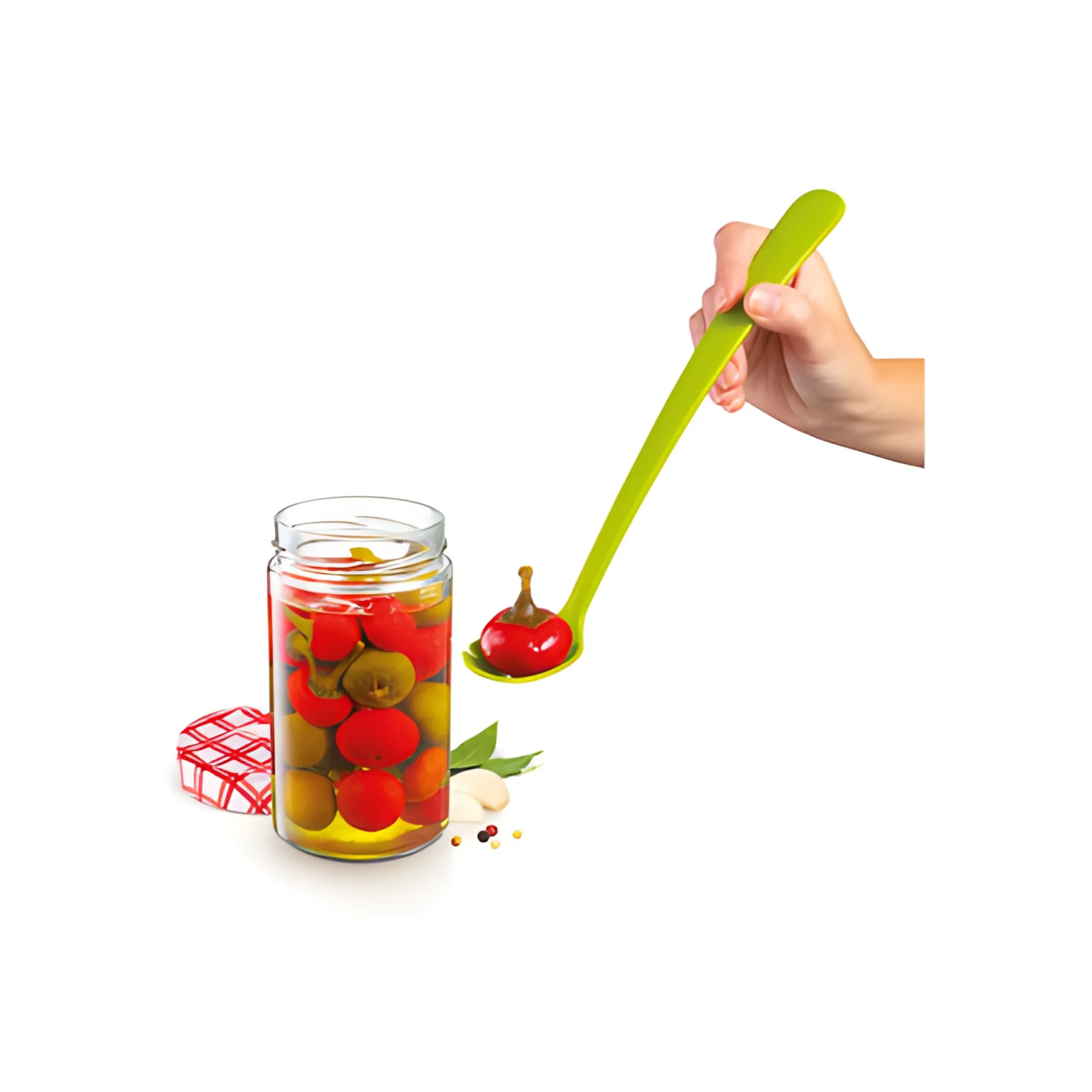 Der 28 cm lange Löffel ist hervorragend geeignet zum leichten Entnehmen von Lebensmitteln aus Einmachgläsern. Der Löffel hat eine perforierte Schaufel mit handlichen, langen Stiel, wodurch sich in Öl oder Essig eingelegtes Gemüse wie Silberzwiebeln, Cocktailtomaten oder Oliven bequem aus den Gläsern schöpfen, schnell abtropfen und sicher zum Servieren in Schälchen umfüllen lässt.