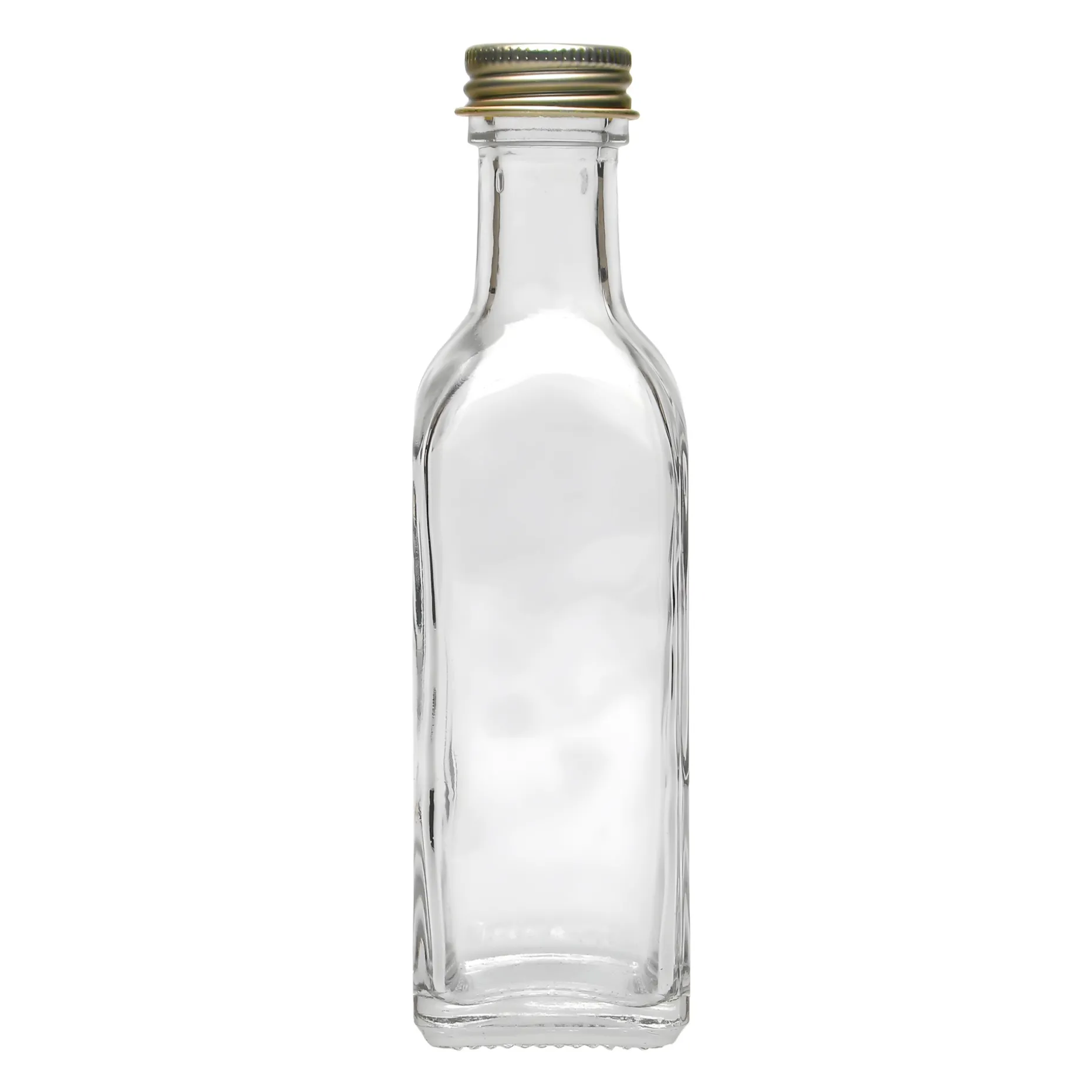 Die kleine Ölflasche der Marasca-Serie hat eine markante quadratische Form und einen kurzen Hals. Mit einer Füllmenge von 100 ml ist die Portionsflasche ideal für kleine Kostproben und zum Transportieren von Soßen und Dressings. Befüllt mit Likör, Sirup, aromatisiertem Öl oder Kräuteressig ist sie ein schönes Mitbringsel und Giveaway, über das sich jeder freut. Auch als originelle Deko-Flasche kann sie wunderbar verwendet werden.
