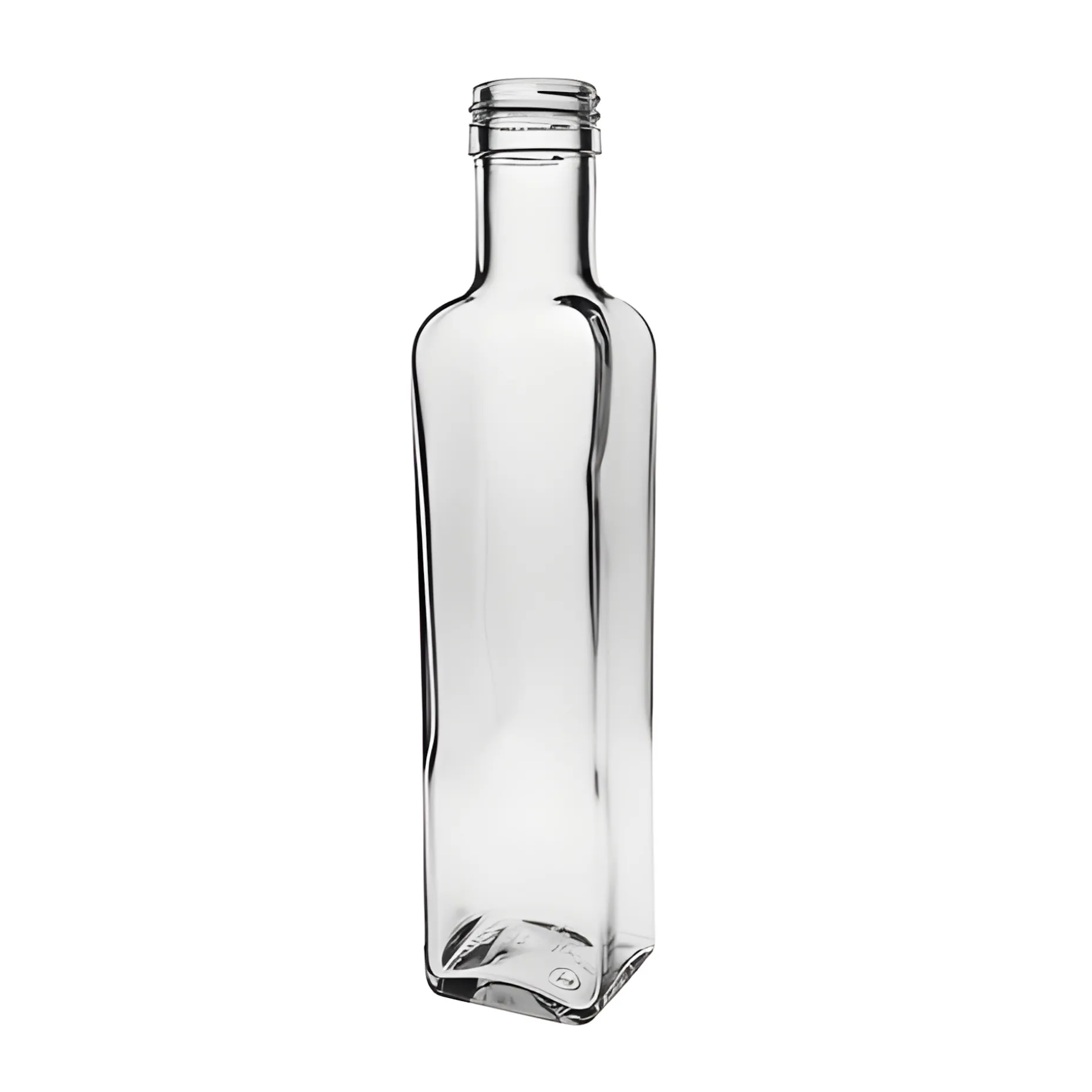 Die klassische Ölflasche der Marasca-Serie hat eine markante quadratische Form und einen kurzen Hals. Mit einer Füllmenge von 250 ml ist sie auch eine ideale Essigflasche, aber natürlich ebenso gut für andere Füllgüter wie Sirup, Saft und Likör zu verwenden.