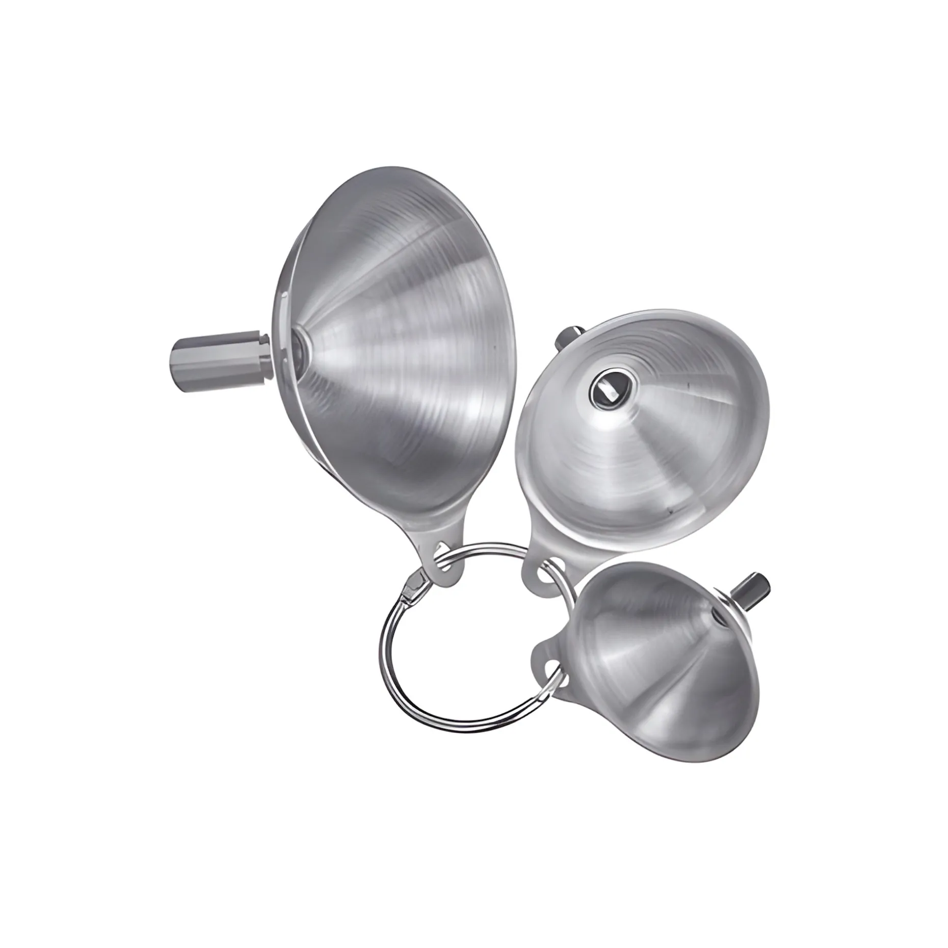 Minitrichter aus Edelstahl in 3 verschiedenen Größen. Mit diesen kleinen Trichtern ist das Befüllen von Reagenzgläsern und Fläschchen mit schmaler Öffnung gar kein Problem mehr. Die Trichter haben einen schlanken Auslauf, sodass sie selbst auf kleinste Deko-Flaschen passen, die mit selbstgemachtem Sirup, Likör oder auch Sand leicht befüllt werden können.