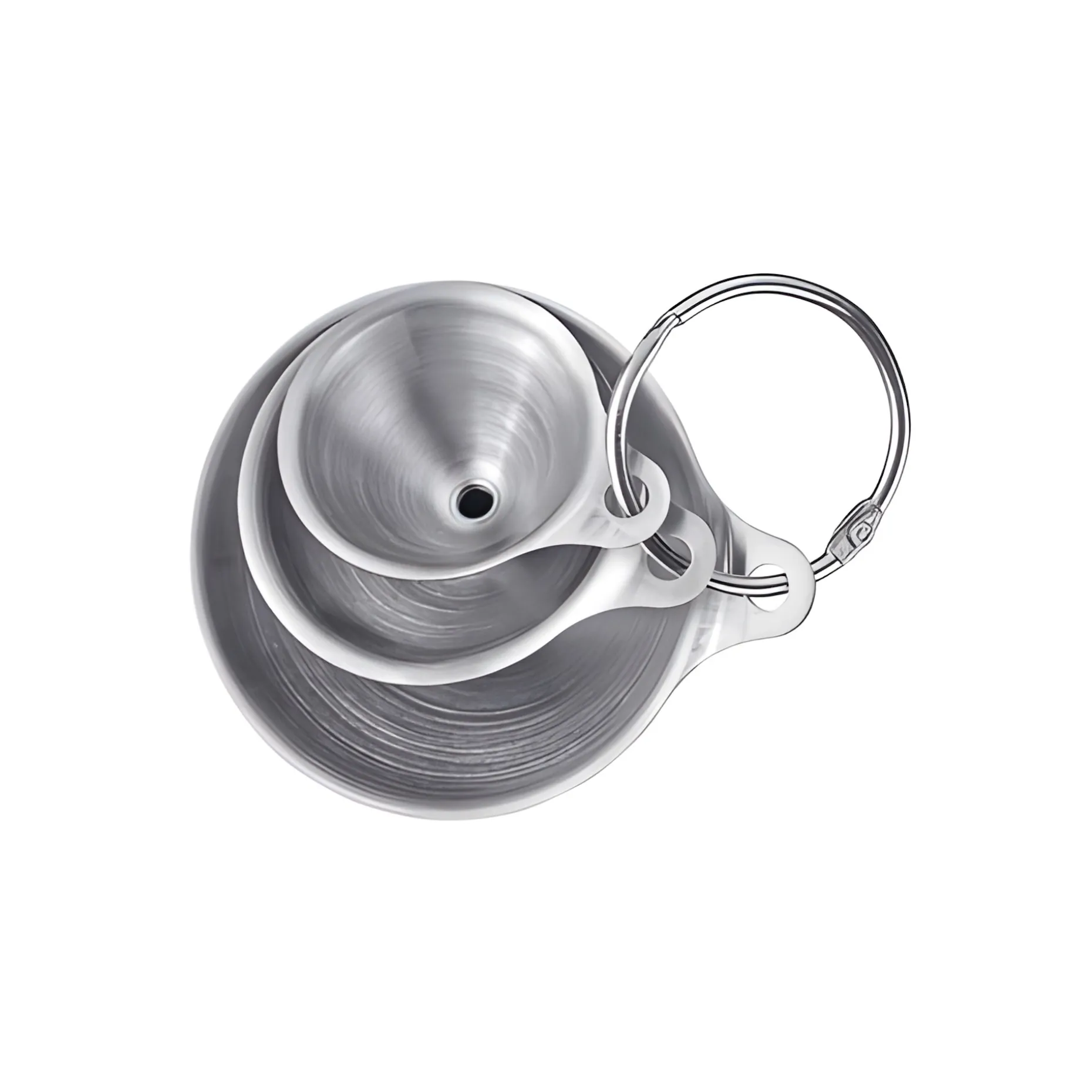 Alle drei Einfülltrichter sind an einem Ring befestigt und können so super platzsparend an einem Haken verstaut werden. So gehen sie nicht verloren und sind vor allem gleich griffbereit. Nach Verwendung können die Trichter dann einfach in der Spülmaschine gereinigt werden.