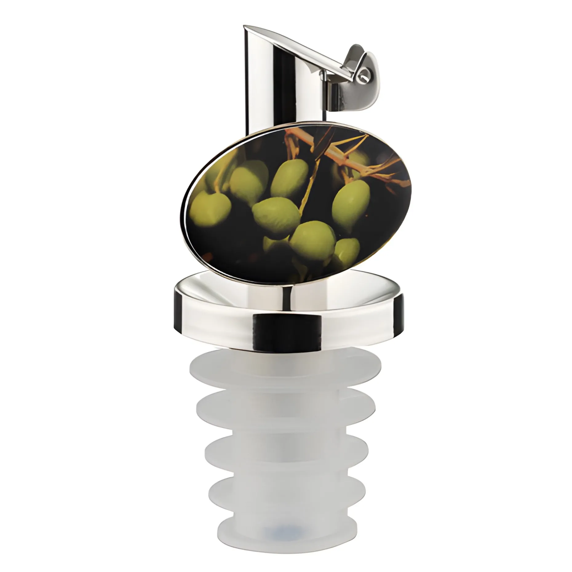 Informationen zum Artikel: Ölausgießer Edelstahl mit Lamellenstopfen ‚Oliven‘