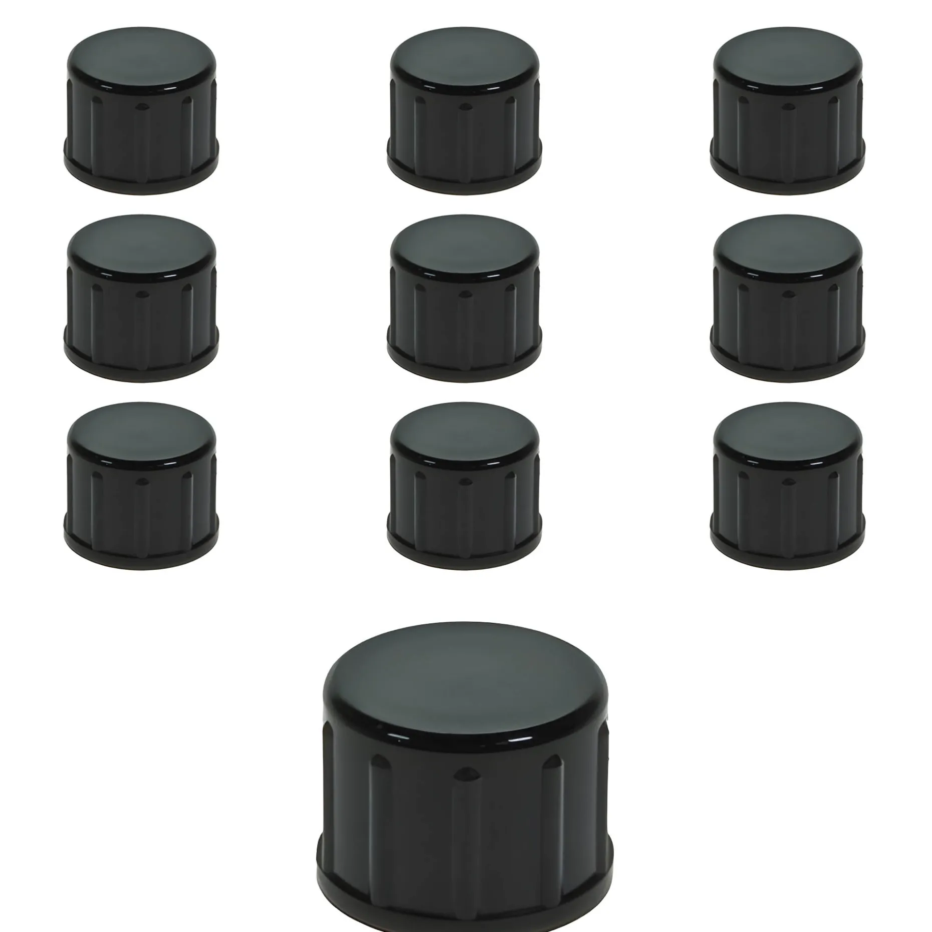 Der schwarze Schraubverschluss aus Kunststoff im praktischen 10er-Pack passt auf alle Schraubflaschen mit einer PP 14-Mündung.