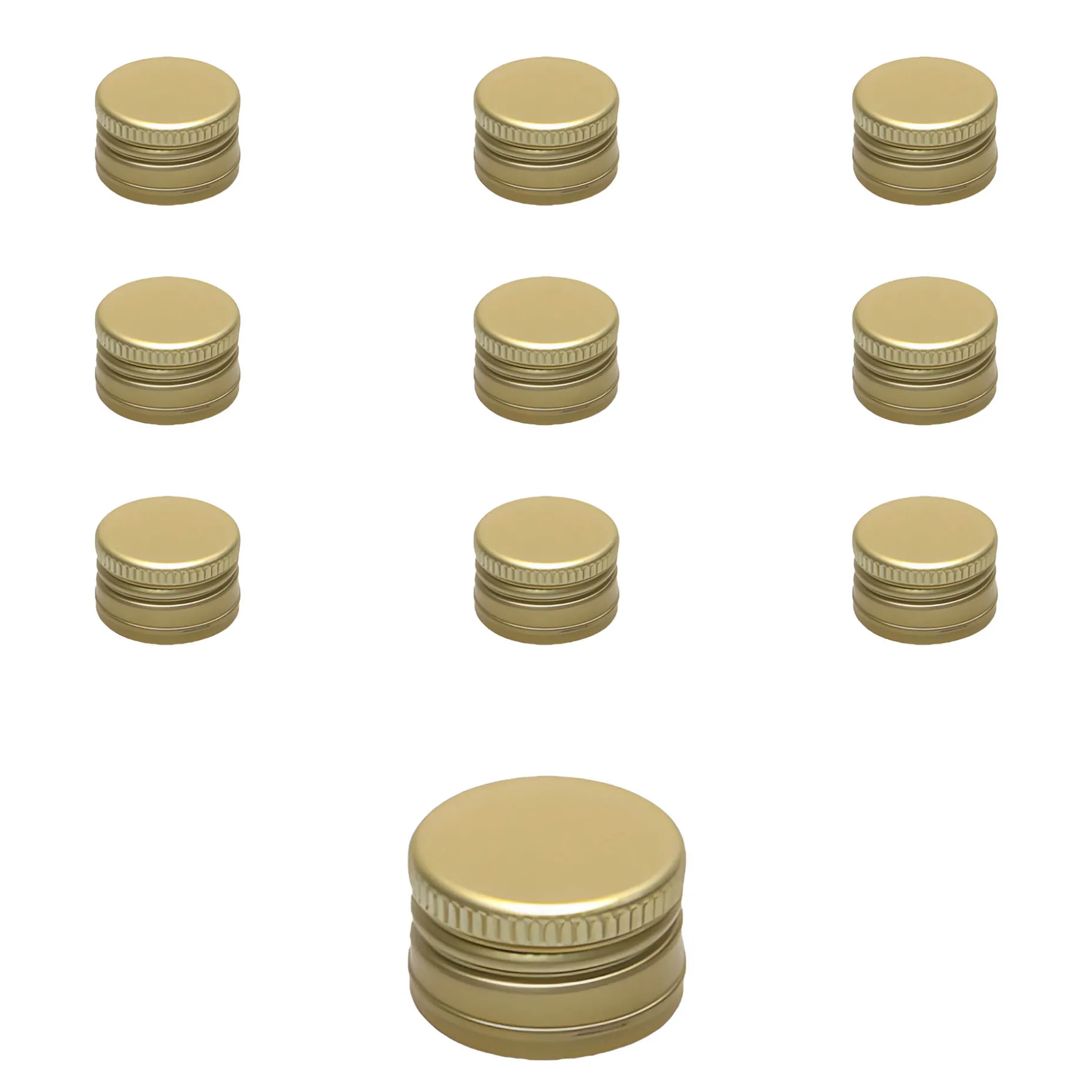 Der goldfarbene Schraubverschluss aus Aluminium im praktischen 10er-Pack passt auf alle Schraubflaschen mit einer PP 22-Mündung, z. B. auf die kleine Geradhalsflasche 100 ml.