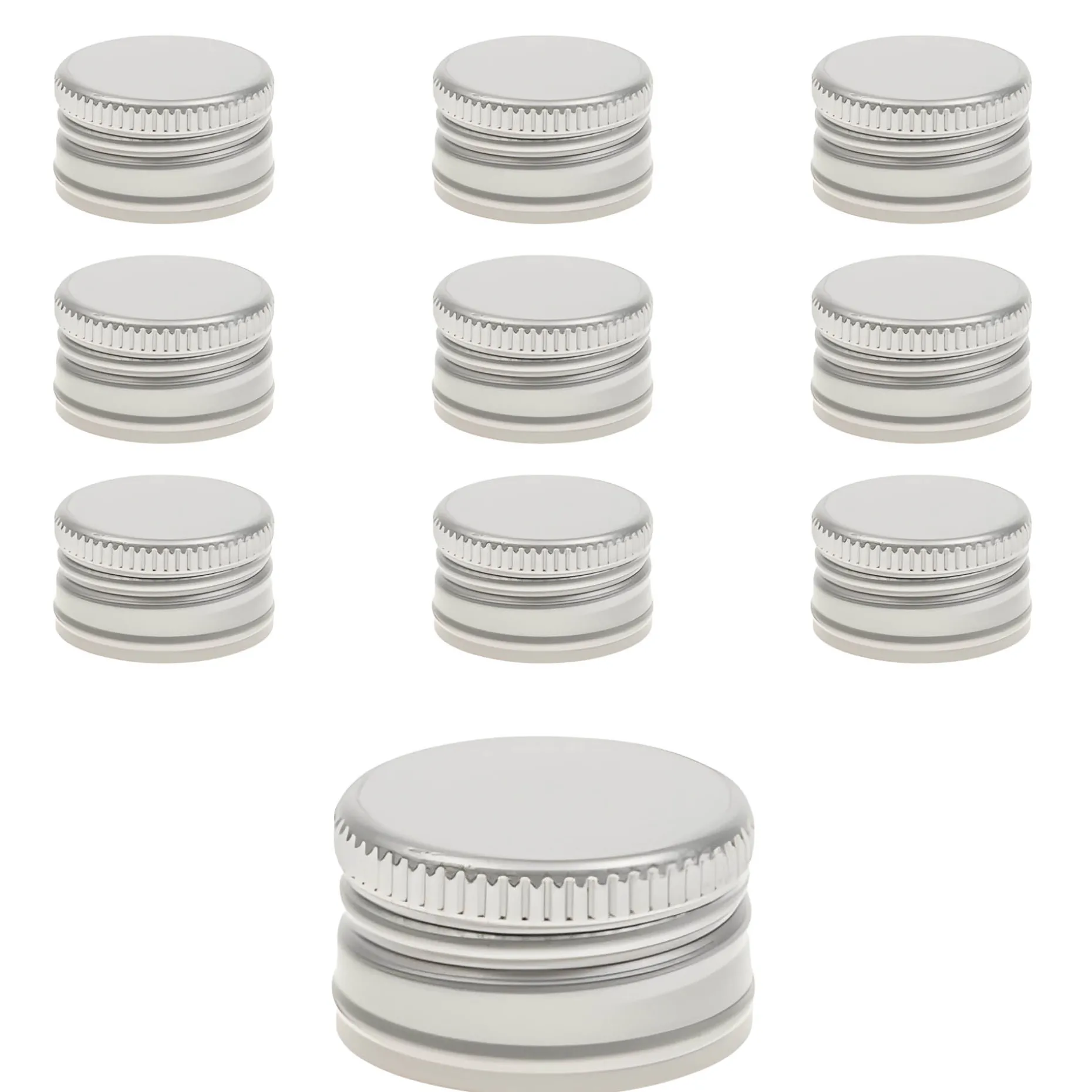 Der silberfarbene Schraubverschluss aus Aluminium im praktischen 10er-Pack passt auf alle Schraubflaschen mit einer PP 24-Mündung, z. B. auf die kleine Marasca 100 ml und Dorica 100 ml.