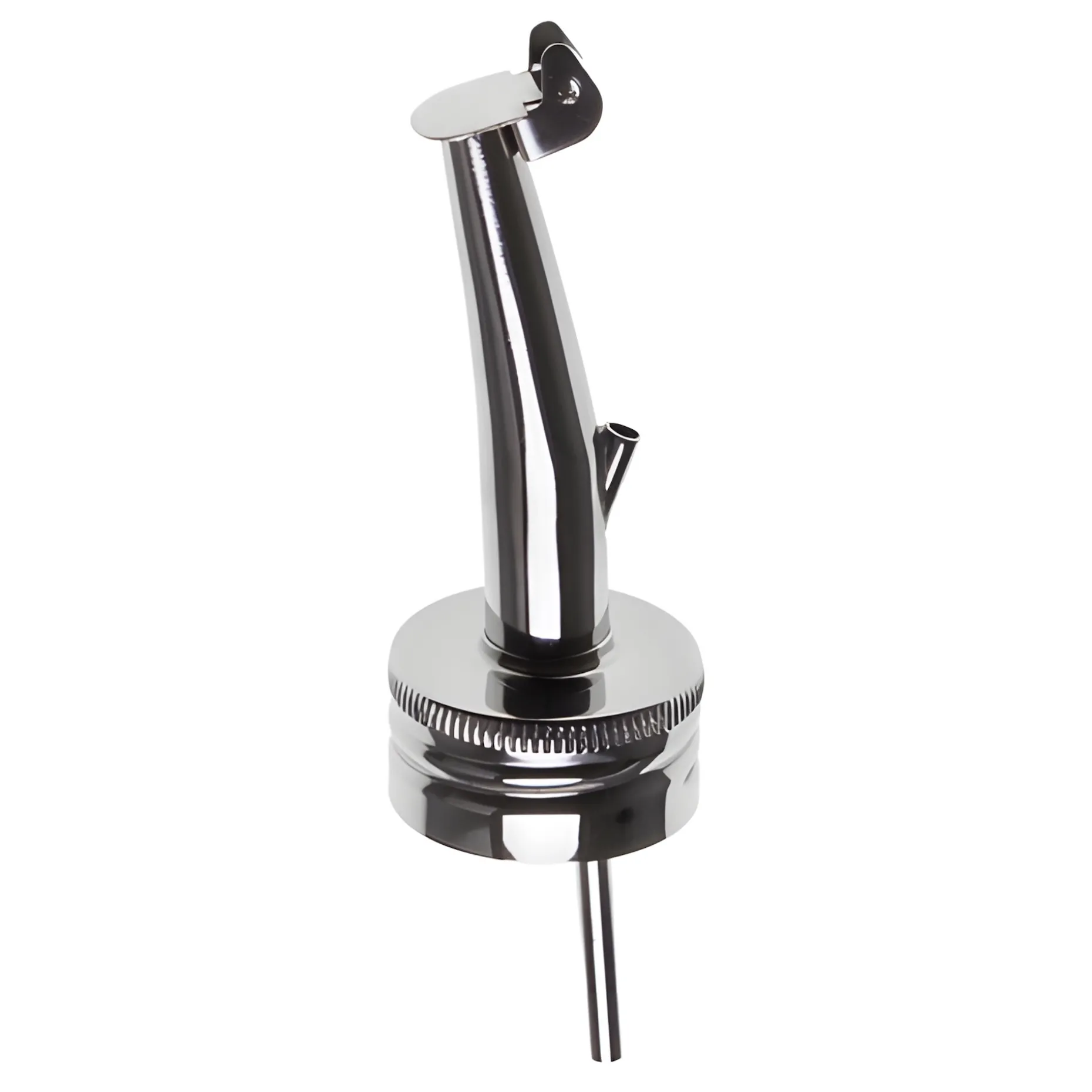 Der hochwertige Flaschenausgießer aus Edelstahl ermöglicht das mühelose Ausschenken mit nur einer Hand. Er passt auf Schraubflaschen mit einem PP 28 Gewinde und ist eine praktische Dosierhilfe für Getränke wie Sirup, Saft, Likör und Schnaps. Die beweglich angebrachte Metallklappe öffnet sich beim Ausgießen automatisch und schützt den Inhalt vor Verschmutzungen.