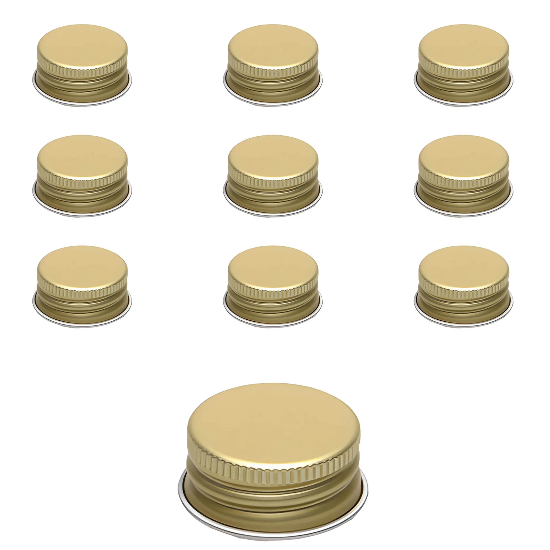 Der goldfarbene Schraubverschluss aus Aluminium mit Rollrand im praktischen 10er-Pack passt auf alle Schraubflaschen mit einer PP 28-Mündung, z. B. auf Geradhalsflaschen (ab 200 ml), die Pinta 350 ml und 500 ml SV und die Taschenflaschen (ab 100 ml).