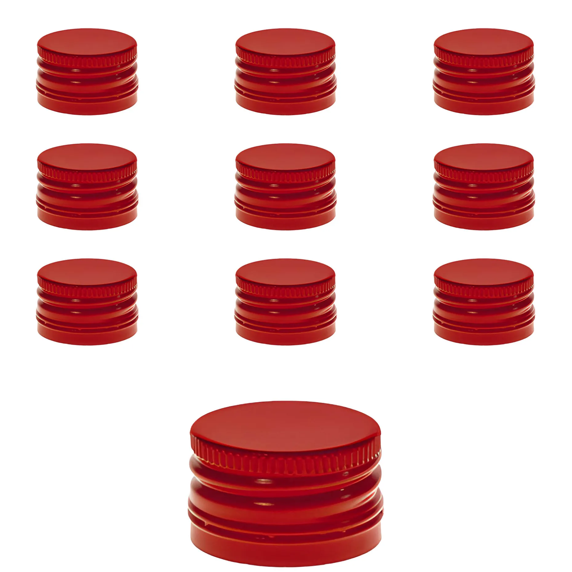 Der rote Schraubverschluss aus Aluminium im praktischen 10er-Pack passt auf alle Schraubflaschen mit einer PP 28-Mündung, z. B. auf Geradhalsflaschen (ab 200 ml), die Pinta 350 ml und 500 ml SV und die Taschenflaschen (ab 100 ml). Er hat einen Originalitätsring zur Versiegelung.
