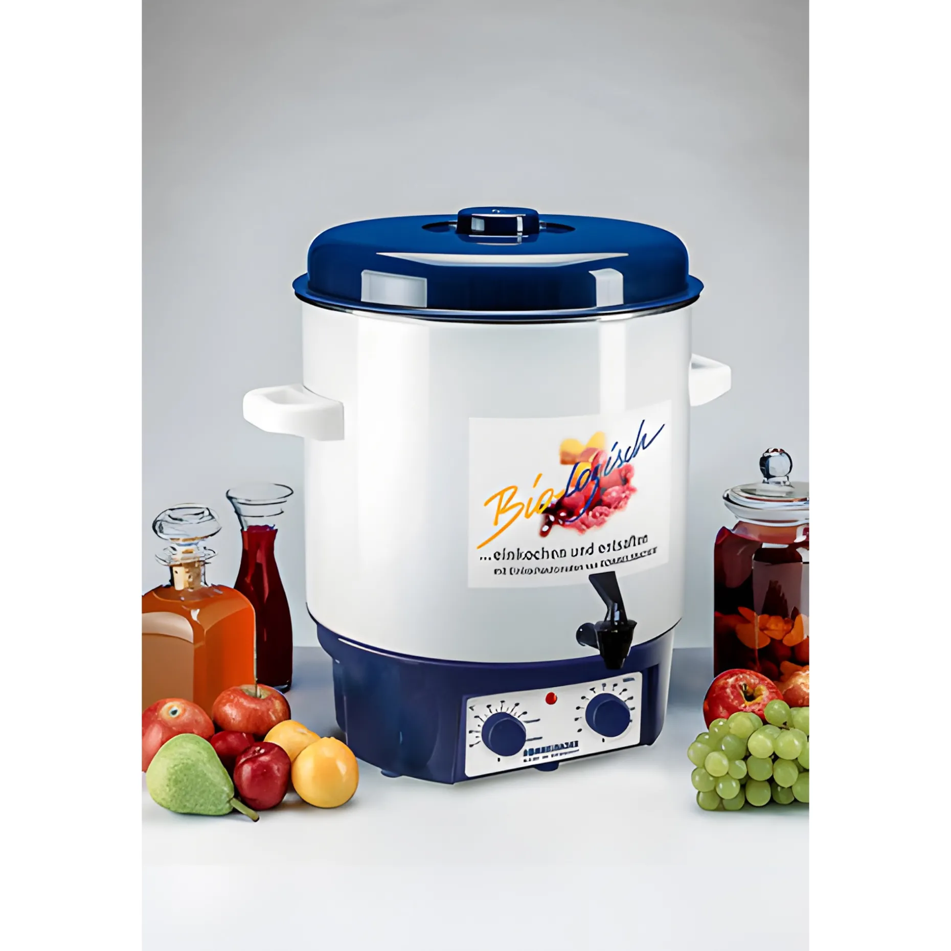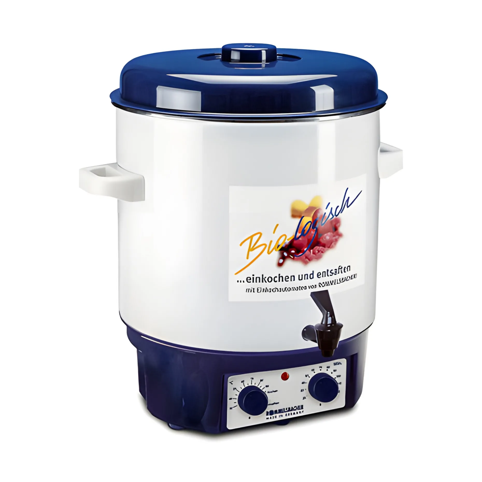 Der professionelle Einkochvollautomat mit Ablaufhahn der Firma Rommelsbacher ist für das komfortable und gesunde Konservieren von Obst, Gemüse, Säfte und Marmeladen geeignet.
