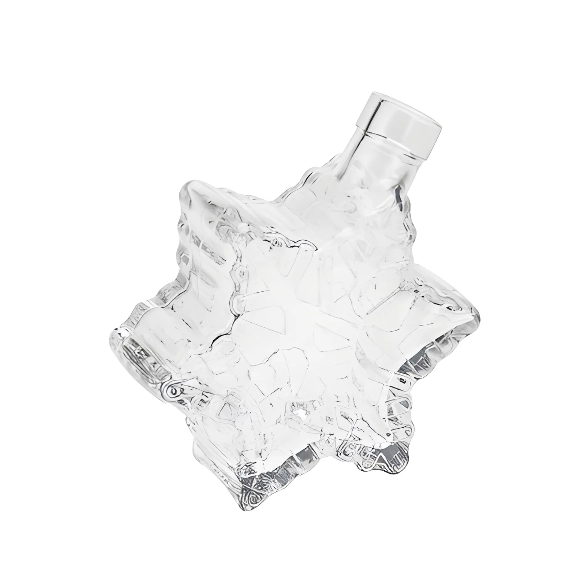 Die außergewöhnliche Schmuckflasche in Form einer Schneeflocke ist die perfekte Verpackung für winterliche Köstlichkeiten. Die reliefartige Struktur lässt die hübsche Korkenflasche wie ein schimmerndes Eiskristall erscheinen, dessen Wirkung besonders gut zur Geltung kommt, wenn sie mit einer farbigen Flüssigkeit wie Bratapfellikör oder Zimtsirup befüllt wird.