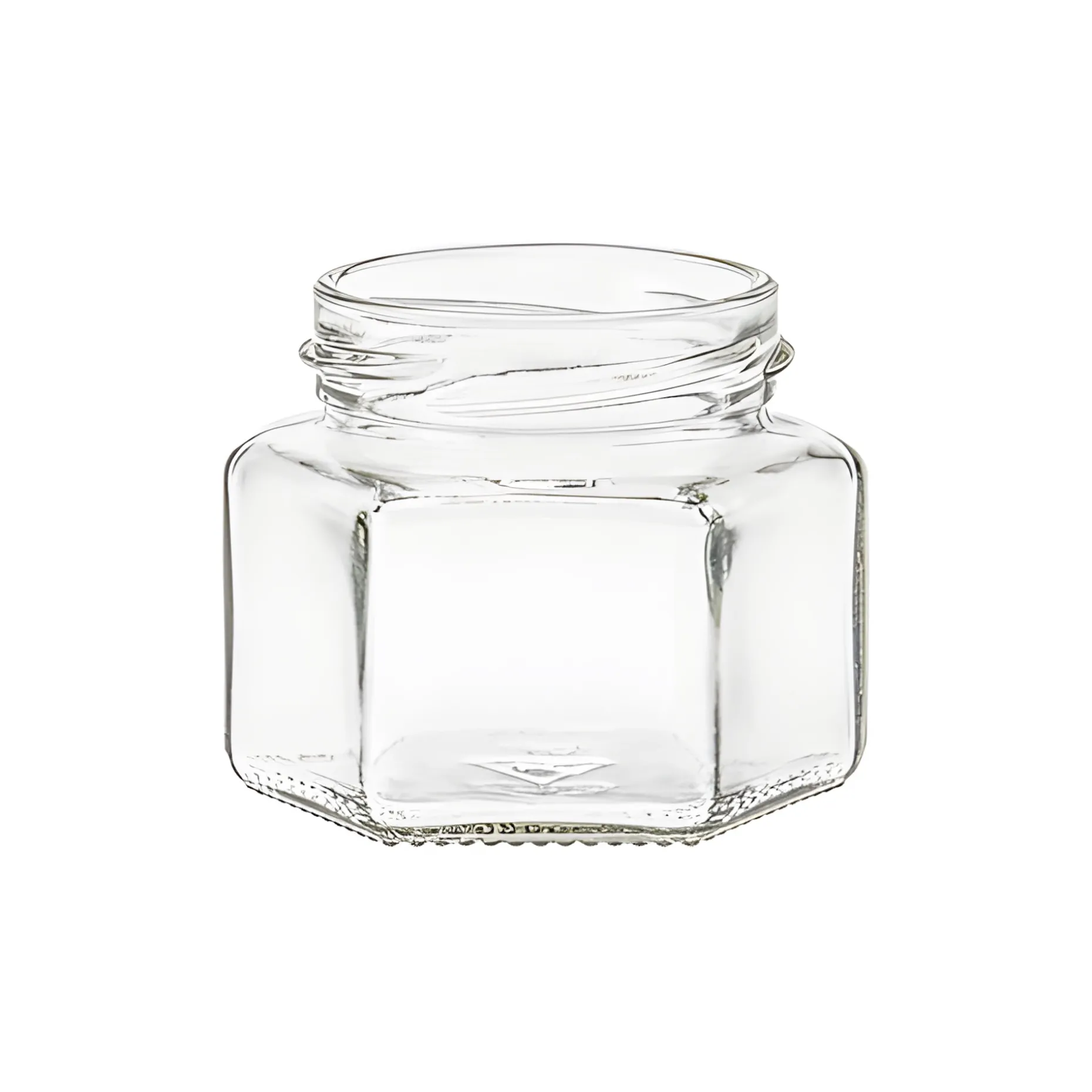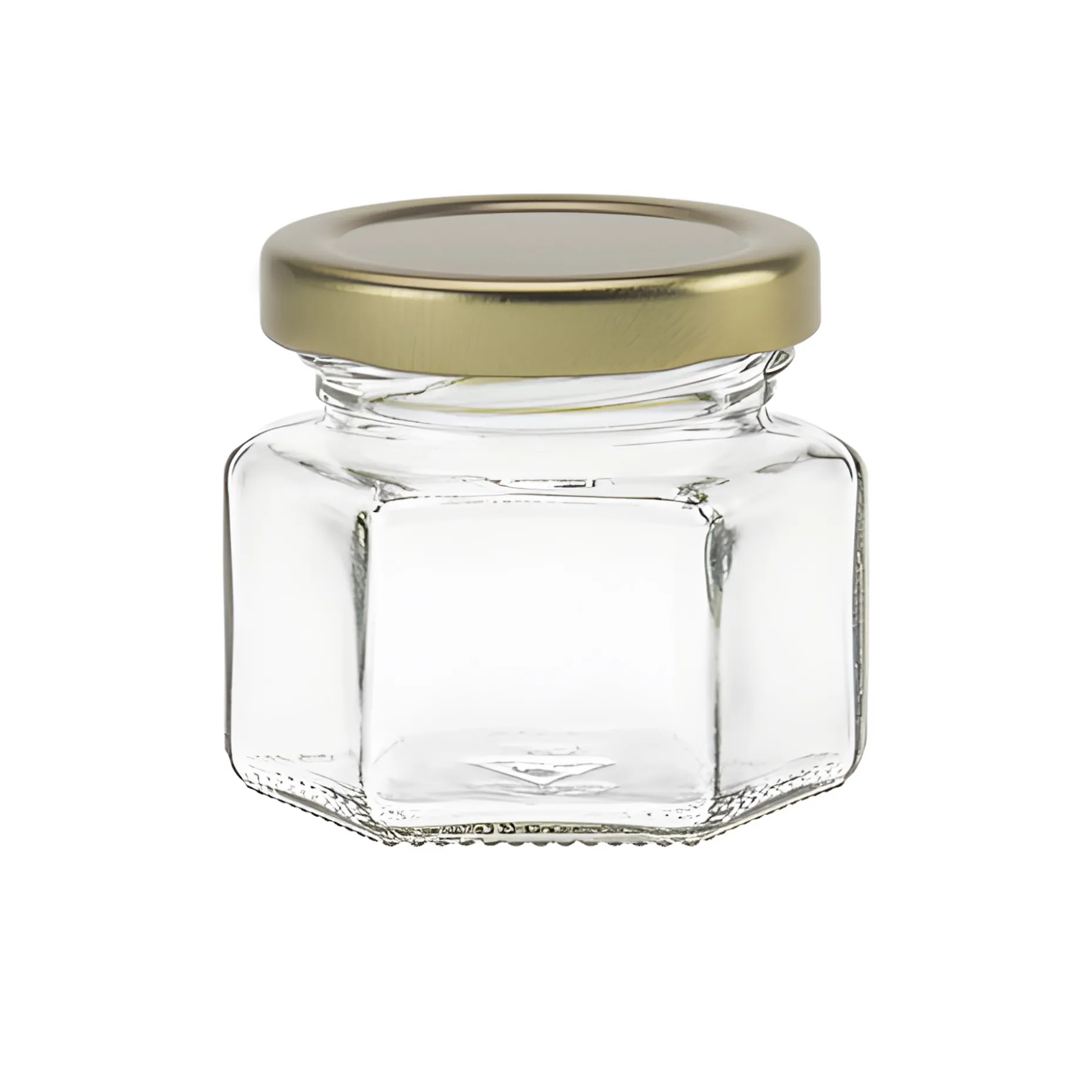 Sechskantglas in flacher Form mit 100 ml Nennvolumen, das als Einmachglas für Senf, Chutney und Konfitüre einiges her macht. Das formschöne Marmeladenglas kann natürlich auch sehr gut für Honig verwendet werden. Die sechseckige Schmuckform ist äußerst ansprechend und dekorativ, deshalb ist dieses ausgefallene Gläschen gerade für Geschenkkörbe und kleine Präsente besonders geeignet.