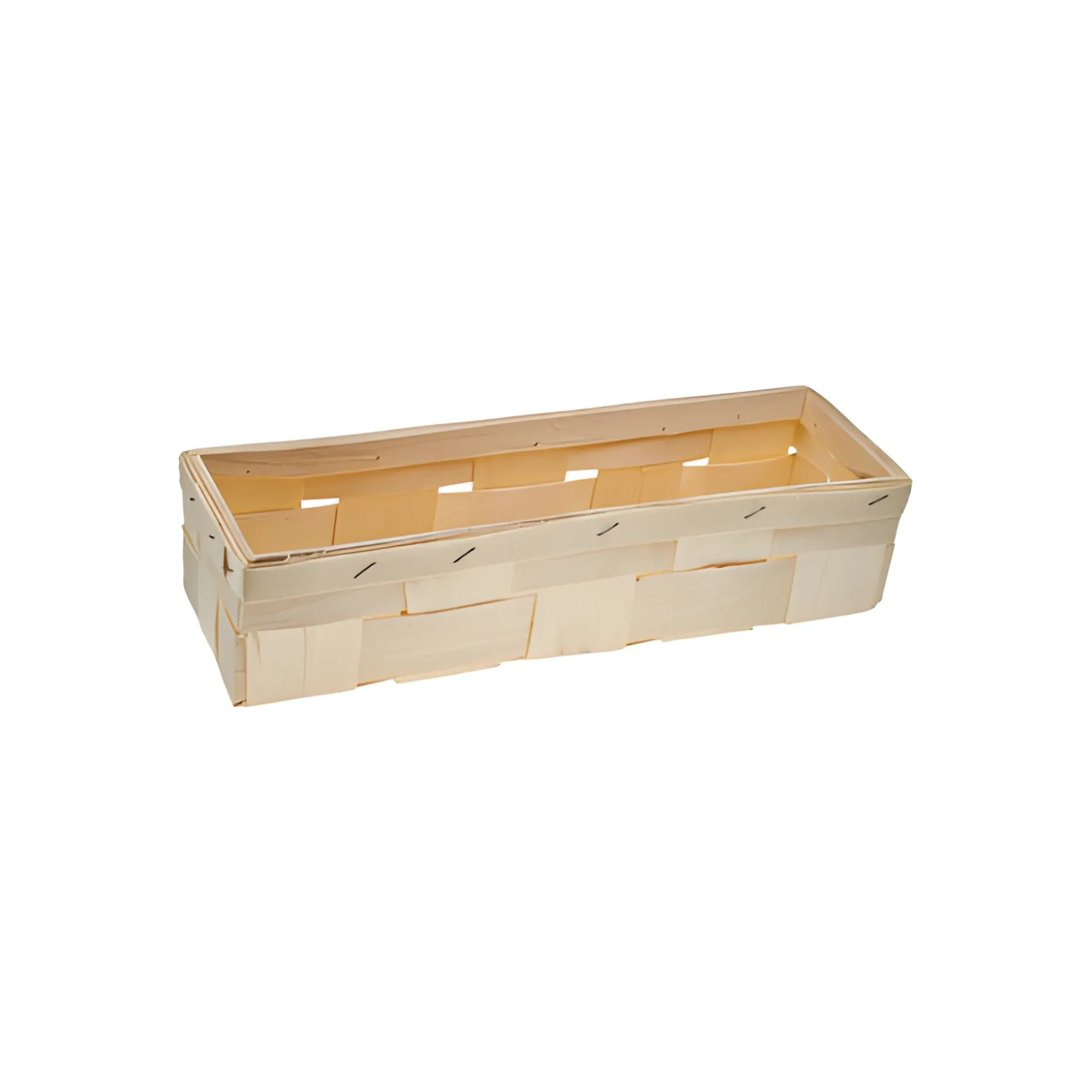 Rechteckiger Spankorb ohne Bügel, gut geeignet als Geschenkkorb. Sehr hübsch auch mit Holzwolle.