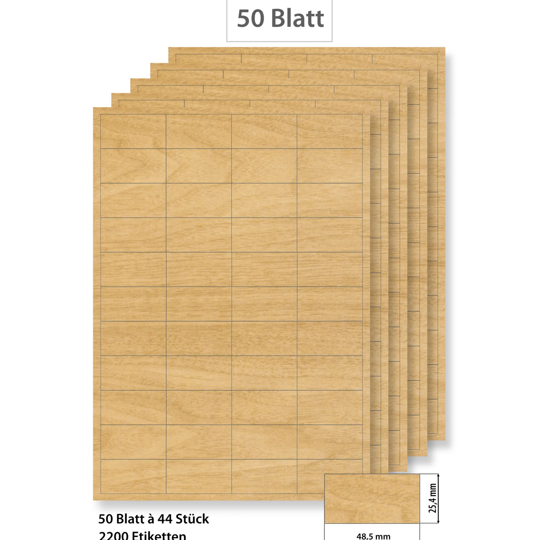 Informationen zum Artikel: Steffis Etiketten 48,5 x 25,4 mm Holzdekor – 50 Blatt A4