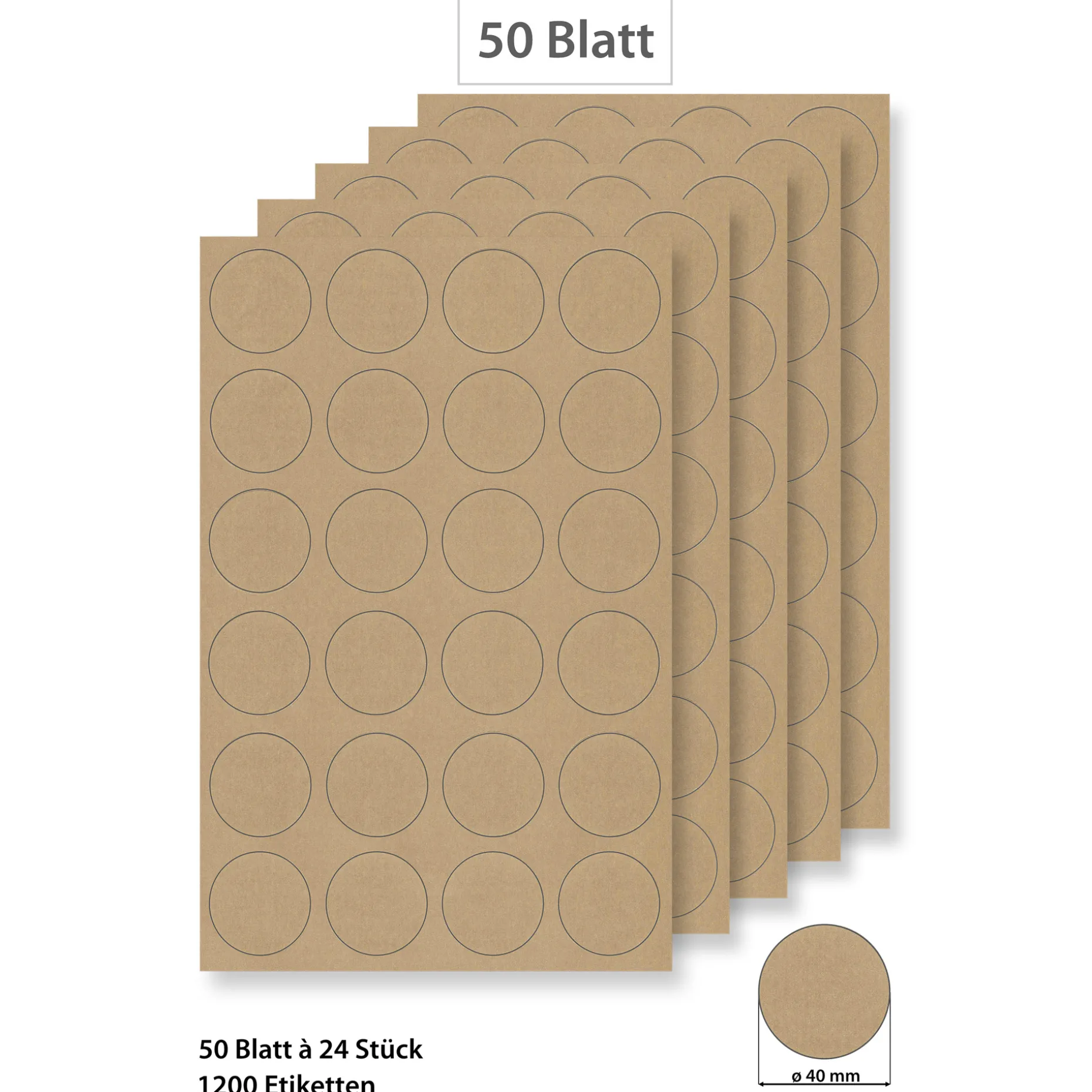 Informationen zum Artikel: Steffis Etiketten rund 40 mm natur – 50 Blatt A4