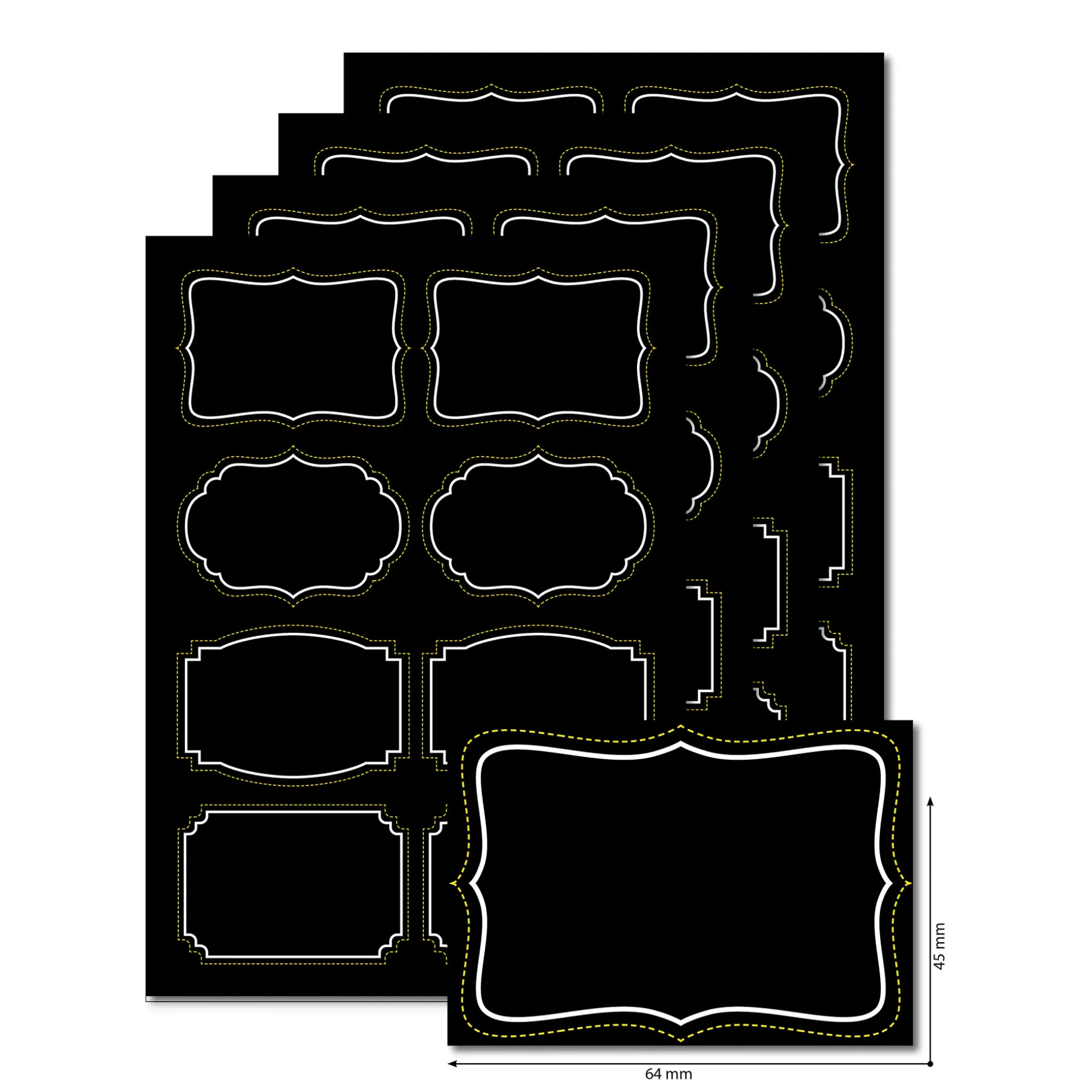 In diesem Pack sind 4 Blatt mit je 8 Kreide-Etiketten enthalten (32 Etiketten insgesamt).