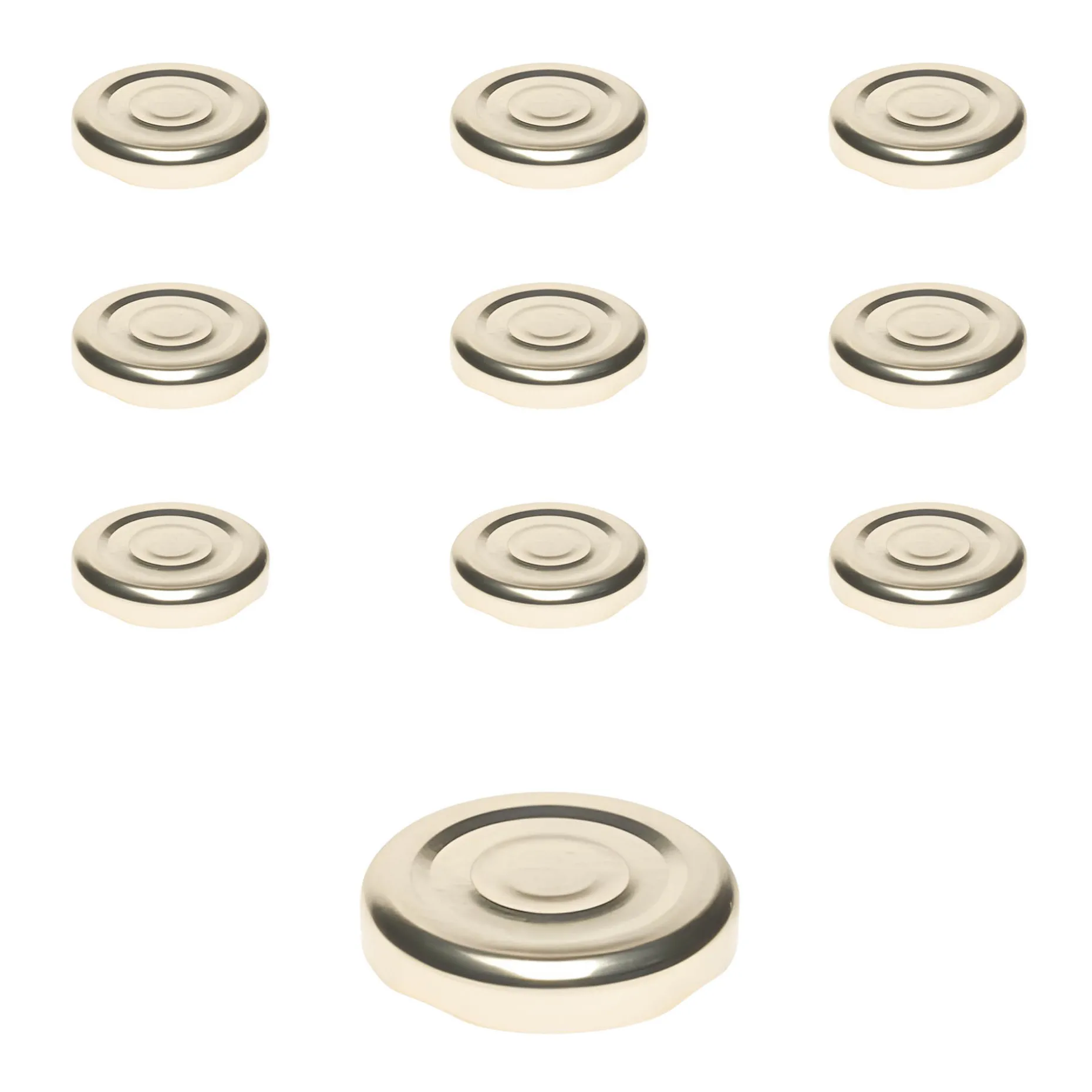 Der Twist-Off-Deckel in Gold im praktischen 10er-Pack passt auf Gläser und Flaschen mit einer TO 43 Mündung (äußerer Öffnungsdurchmesser ohne Gewinde ca. 37,9 mm). Er ist erhitzbar bis 120 °C (sterilisierbar) und kann ab einer Füllmenge von 75 ml auch für ölhaltige Füllgüter verwendet werden.