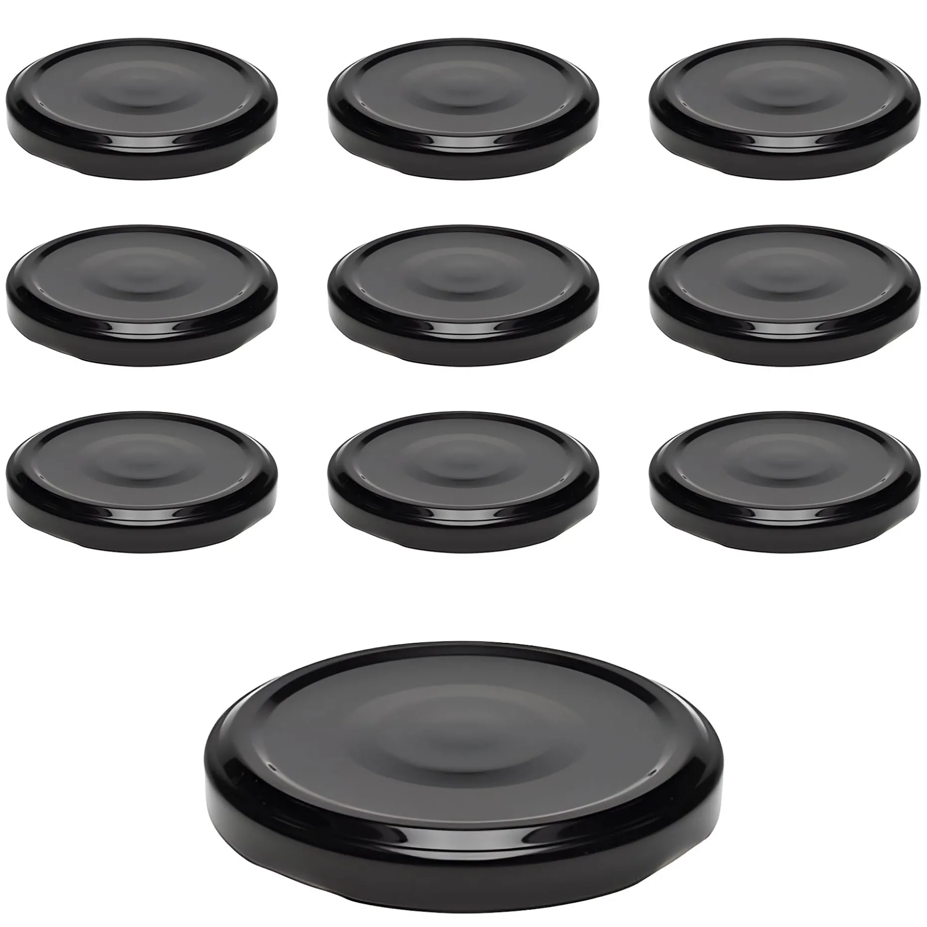 Hochwertiger Twist-Off-Verschluss in Schwarz mit Button, passend für Gläser und Flaschen mit einer TO 63 Mündung (äußerer Öffnungsdurchmesser des Glases ohne Gewinde ca. 58,8 mm) im praktischen 10er-Pack.