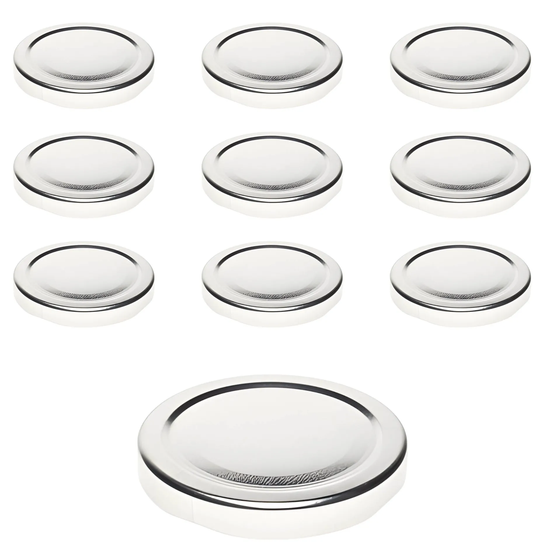 Der Twist-Off-Verschluss in Silber im praktischen 10er-Pack passt auf Gläser und Flaschen mit einer TO 63 Mündung (äußerer Öffnungsdurchmesser ohne Gewinde ca. 58,8 mm). Er ist erhitzbar bis 120 °C (sterilisierbar) und kann ab einer Füllmenge von 180 ml auch für ölhaltige Füllgüter verwendet werden.