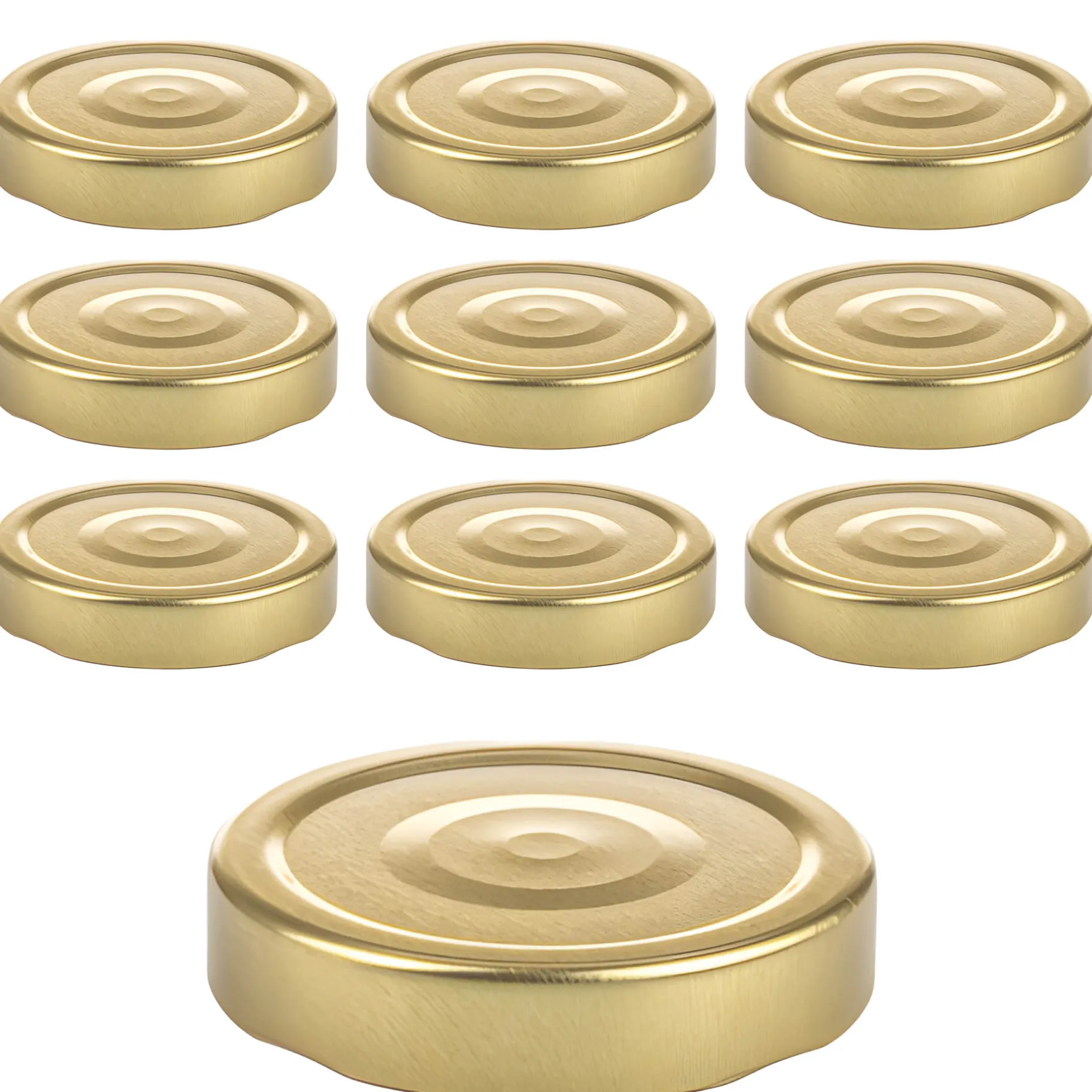 Der goldfarbene Twist-Off-Verschluss Deep mit Button im praktischen 10er-Pack passt auf Gläser mit einer TO 66 Deep-Mündung (äußerer Öffnungsdurchmesser des Glases ohne Gewinde ca. 62 mm).