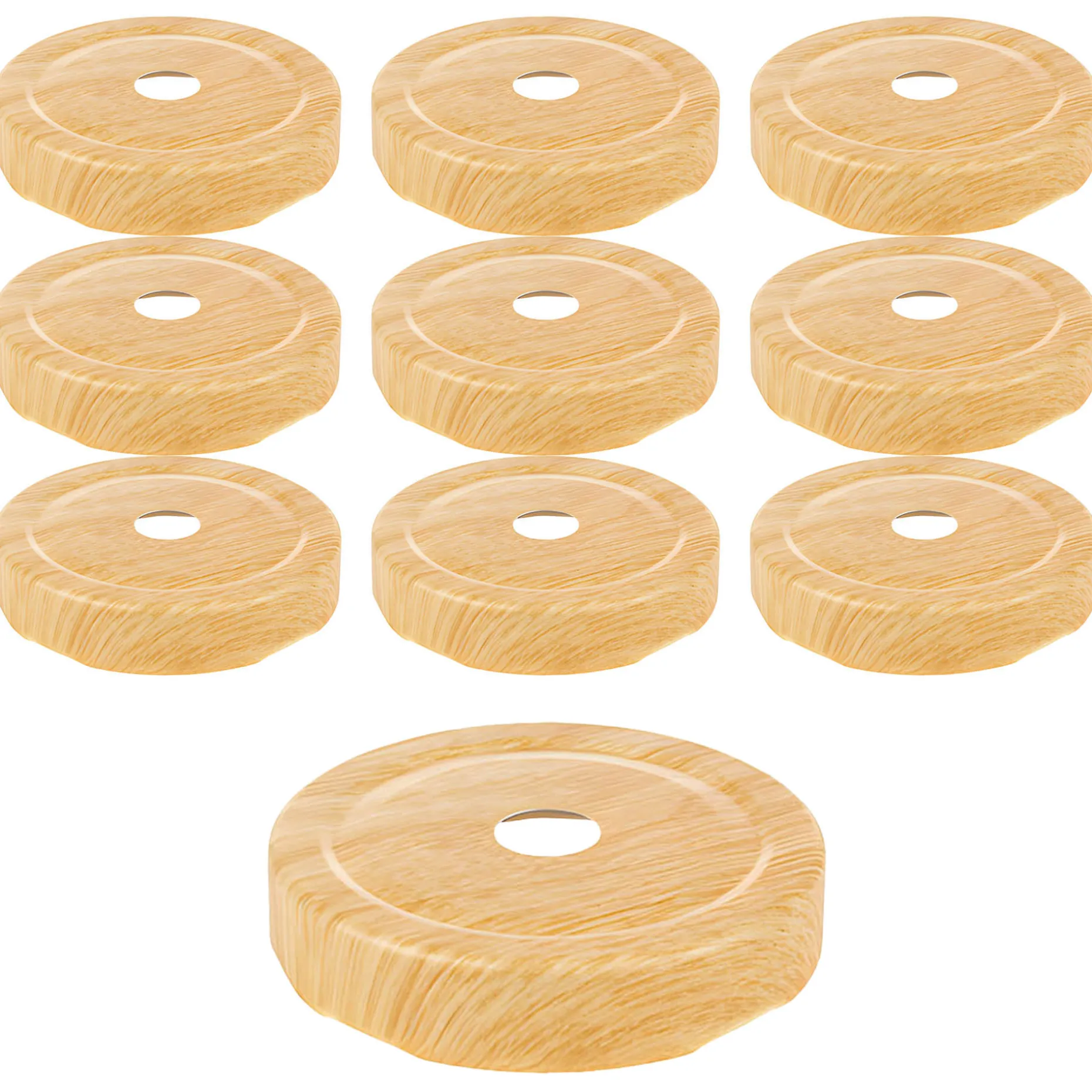 Der Trinkhalmdeckel Deep mit Holzdekor im praktischen 10er-Pack passt auf Twist-Off-Gläser mit einer TO 66 Deep-Mündung. Er hat ein eingestanztes Loch von 13 mm Durchmesser für einen Strohhalm und ist besonders gut zum Servieren und Trinken von Bubble Tea geeignet, da der typisch breite Trinkhalm durch das Strohhalmloch passt.