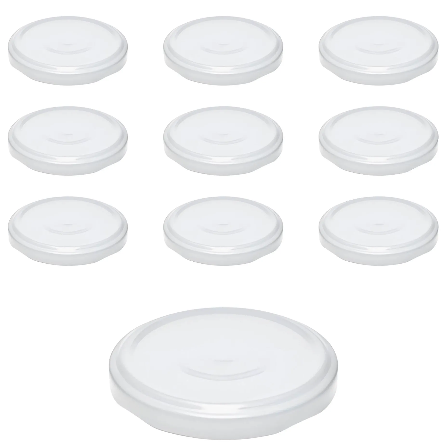 Der weiße Twist-Off-Deckel im praktischen 10er-Pack passt auf Gläser mit einer TO 66 Mündung (äußerer Öffnungsdurchmesser ohne Gewinde ca. 62 mm). Er ist erhitzbar bis 120 °C (sterilisierbar) und kann ab einer Füllmenge von 203 ml auch für ölhaltige Füllgüter verwendet werden.