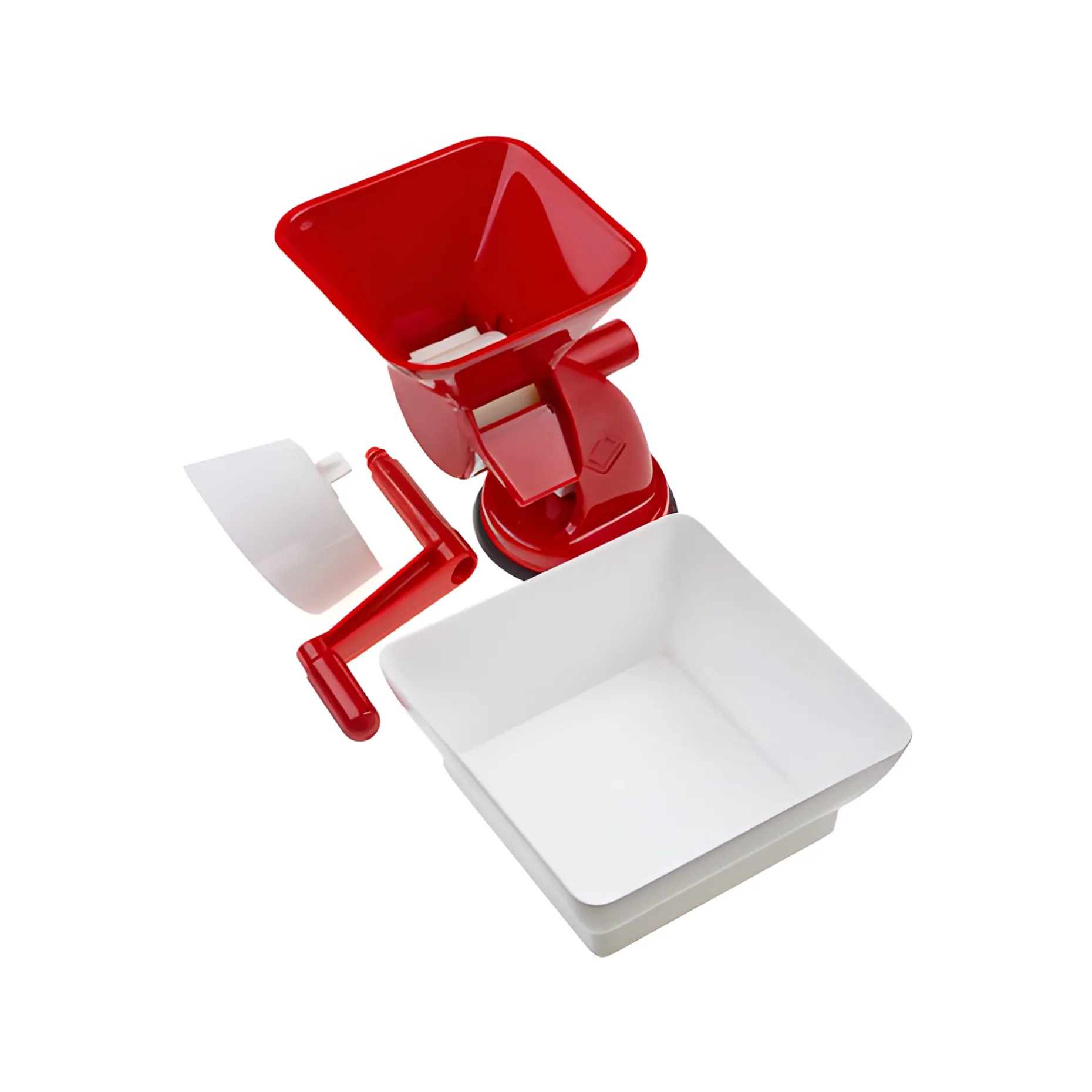 Dieses geschickte Passiergerät ermöglicht es Ihnen Tomatensaft mit Fruchtfleisch, aber ohne Haut und Kerne herzustellen. In einer Stunde können bis zu 50 kg Tomaten verarbeitet werden. Die Presse hat am Standfuß einen Saugnapf und kann damit auf glatten Oberflächen fest fixiert werden. Die rohen Tomaten werden in den Trichter eingefüllt, das Sieb und die Walze trennen die festen Stoffe heraus und die Soße fließt über die Rutsche direkt in die Auffangschale. Die festen Bestandteile der Frucht werden separat an der Seite herausgedrückt. Weiches Obst und gekochtes Gemüse kann genauso verarbeitet werden.
