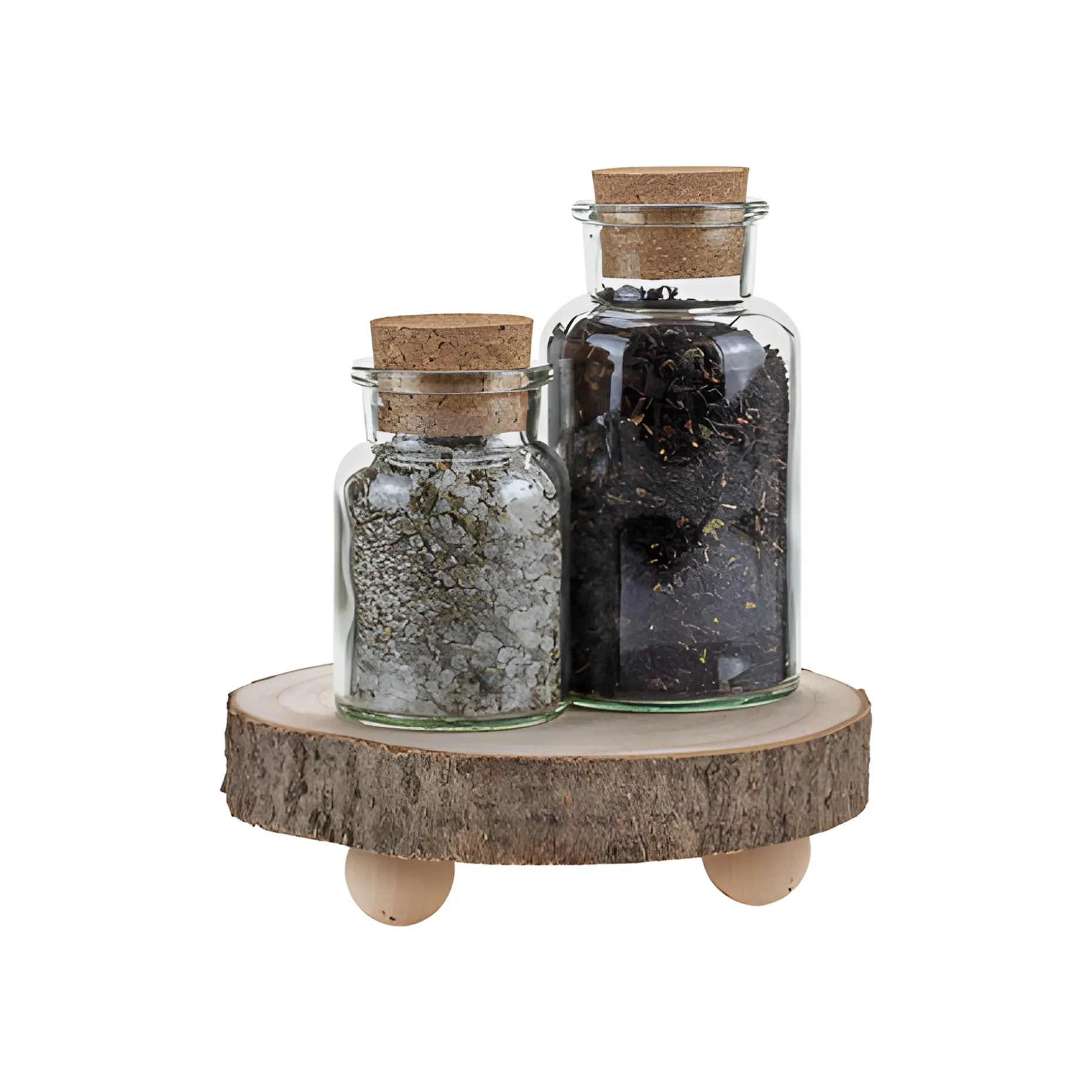 Die lebendige, unregelmäßige Form der echten Baumscheibe mit den drei runden Standfüßen präsentiert nicht nur auf dem Buffet verschiedene Dips in Schalen besonders gut, auch Karaffen mit frisch gepresstem Saft stehen auf dem Untersetzer sicher.