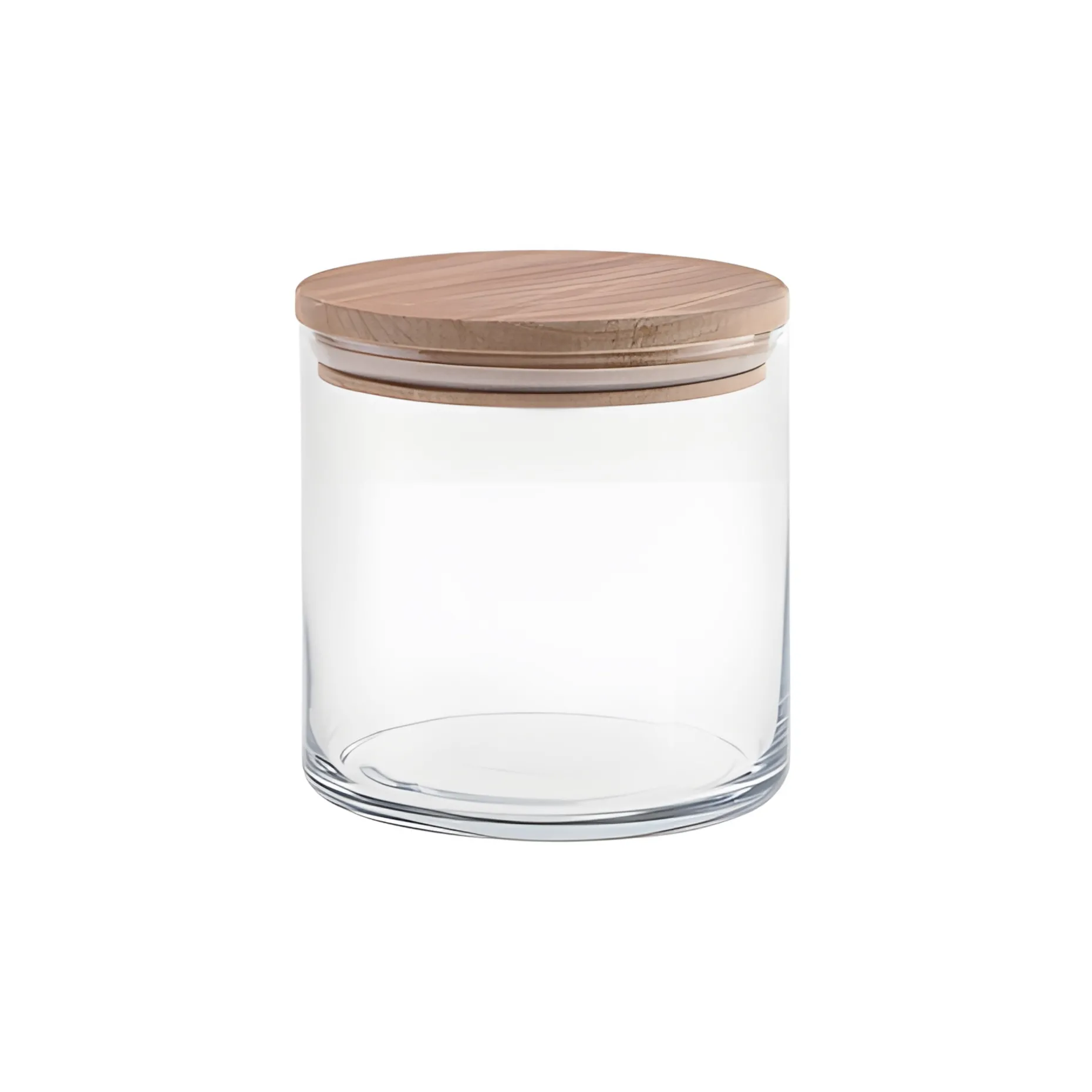 Moderner Glasbehälter, der sich hervorragend zum Verpacken trockener Füllgüter eignet. Nüsse, Reis, Zucker, Linsen oder kleinere Mengen Mehl sind in dem zylindrischen Aufbewahrungsglas mit Holzverschluss aus Buche und Silikondichtung bestens aufgehoben. Der Vorratsbehälter aus Glas sorgt stilsicher für Ordnung im Vorratsschrank und ist ein Schmuckstück für Küche oder Vorratskammer.