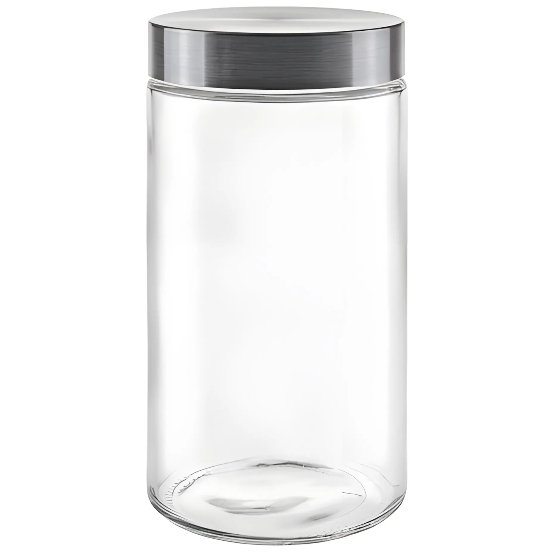 Das zylindrische Schraubglas kommt mit einem Verschluss aus gebürstetem Edelstahl zu Ihnen nach Hause und ist eine perfekte Verpackung für Ihre Trockenvorräte in größeren Mengen. Der Vorratsbehälter aus Klarglas eignet sich zum Aufbewahren von Mehl, Zucker, Linsen und Frühstücksflocken oder Müsli. Dabei schafft der Aufbewahrungsbehälter stilsicher Ordnung im Vorratsschrank und sorgt mit seiner schönen Optik für tolle Akzente in der Küche.