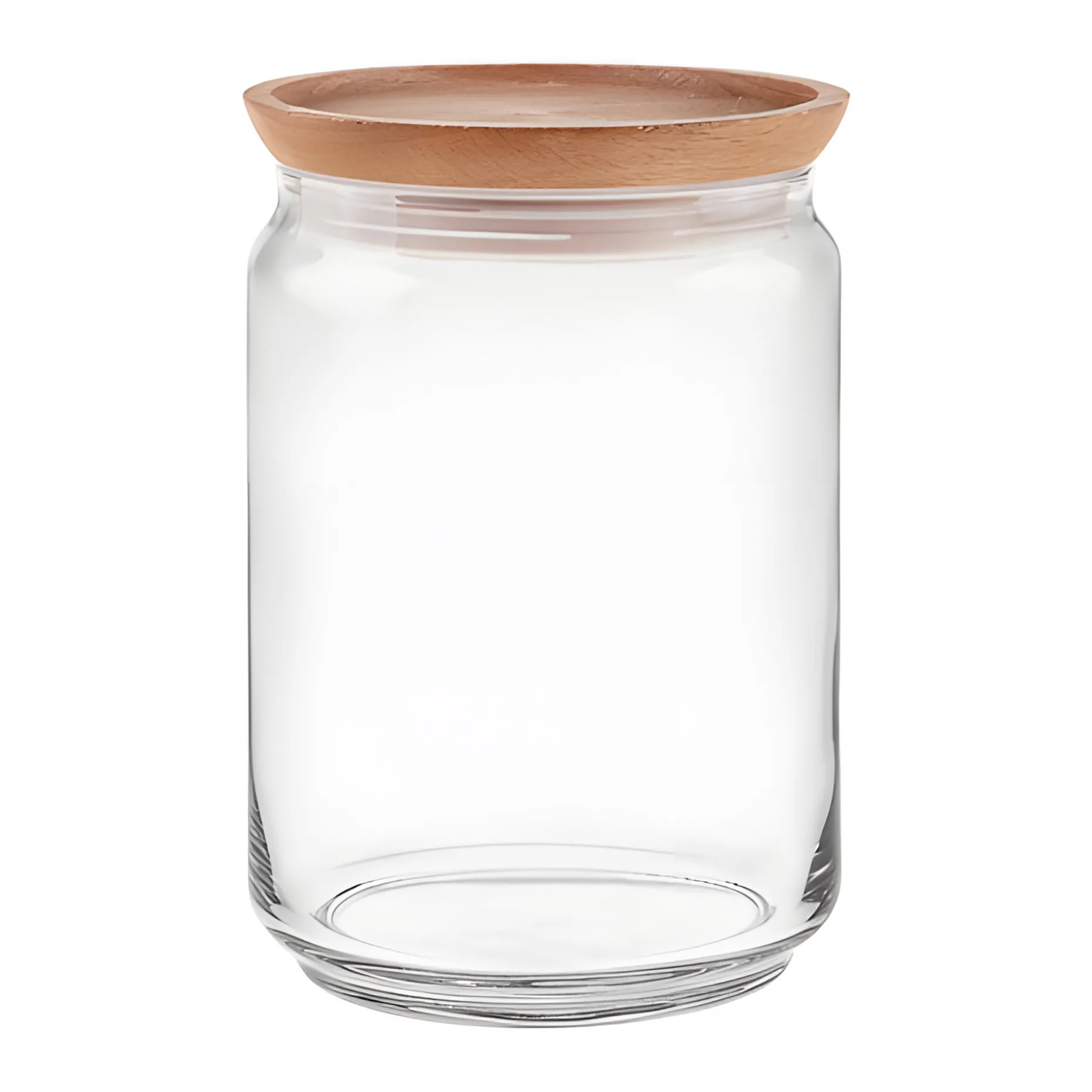 Edles Vorratsglas inklusive hochwertigem Holzverschluss aus Kiefernholz mit einer Kunststoffdichtung mit Lamellen, das mit 1 Liter Fassungsvermögen besonders gut für trockene Lebensmittel wie Mehl, Zucker, Nudeln oder Kaffeepulver genutzt werden kann. Der Behälter ist aus hochweißem Glas gefertigt, der Deckel mit einer BPA-freien Dichtung ausgestattet, die den Inhalt luftdicht und schädlingssicher abschließt. Alle Gläser der Pure Jar-Serie haben einen speziellen Deckel aus Holz, der an der Seite leicht erhöht ist. Dadurch sind die Gläser stapelbar. Das hochwertige Glas ist spülmaschinenfest, der Deckel ist per Hand zu reinigen.