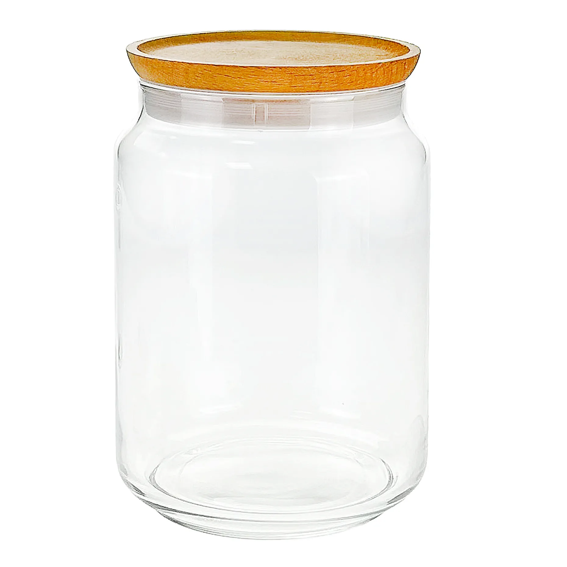 Diese runde Keksdose aus hochwertigem Glas kommt mit einem formschönen Holzverschluss aus Kiefernholz mit einer gerillten Kunststoffdichtung zu Ihnen. Das Aufbewahrungsglas ist stapelbar, verschließt Nahrungsmittel luftdicht und ist ein echter Hingucker im Küchenregal. Mit einem großen Volumen von 2 Litern können Mehl, Zucker, Gebäck oder Frühstücksflocken sehr gut darin aufbewahrt werden.