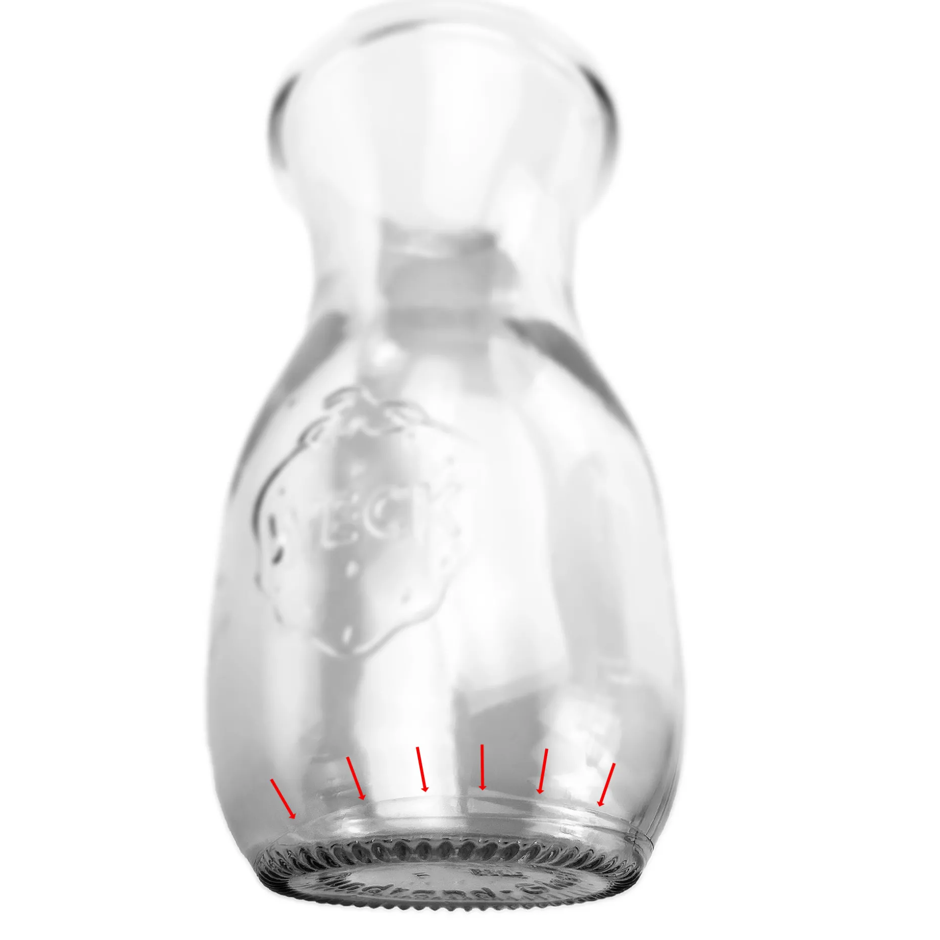 Hinweis: Produktionsbedingt kann es momentan leichte Rillen knapp über der Bodenkante geben. Dieser Schönheitsfehler beeinträchtigt aber nicht die Funktionalität der Flasche.