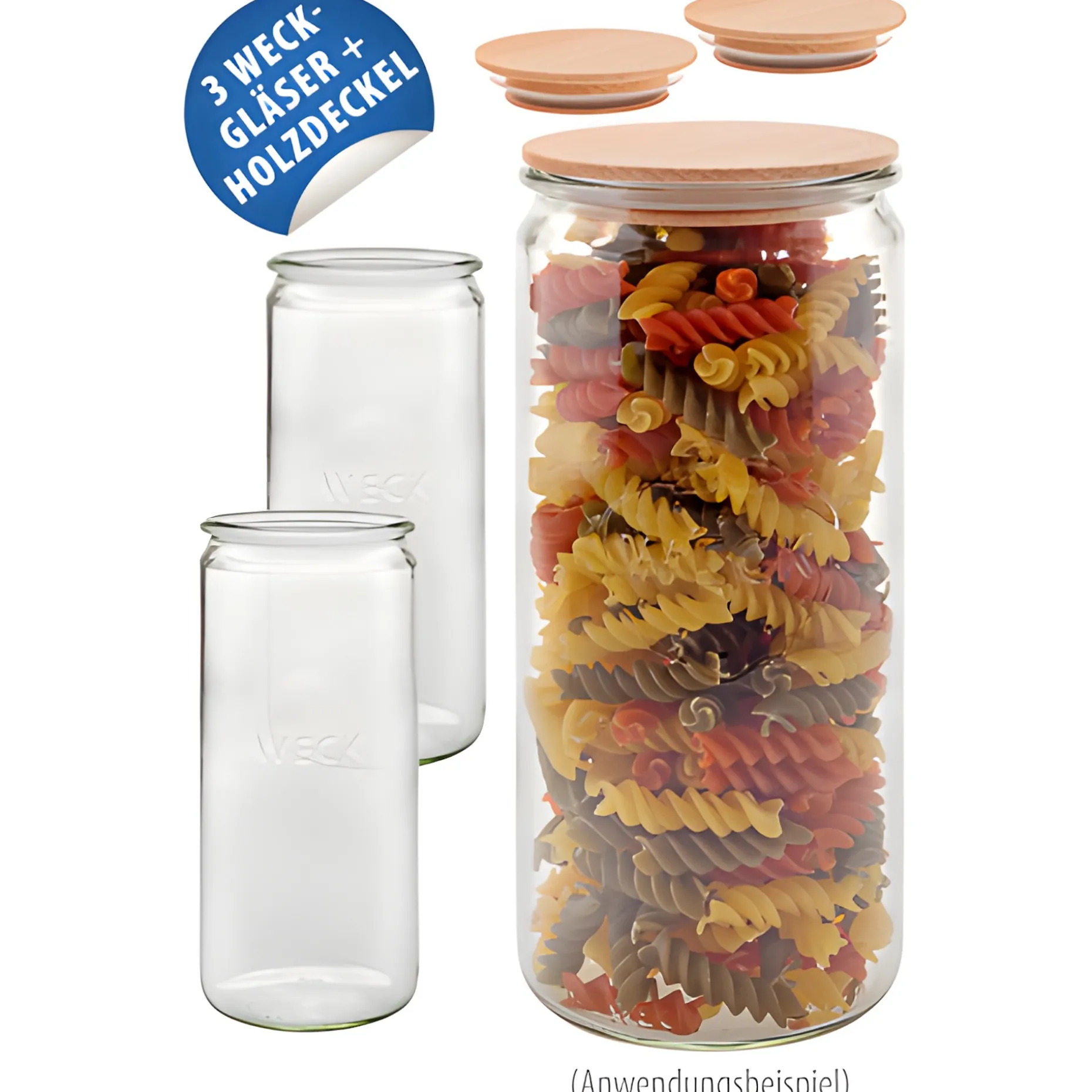 Informationen zum Artikel: WECK-Zylinderglas 1040 ml mit Holzdeckel, 3er Set