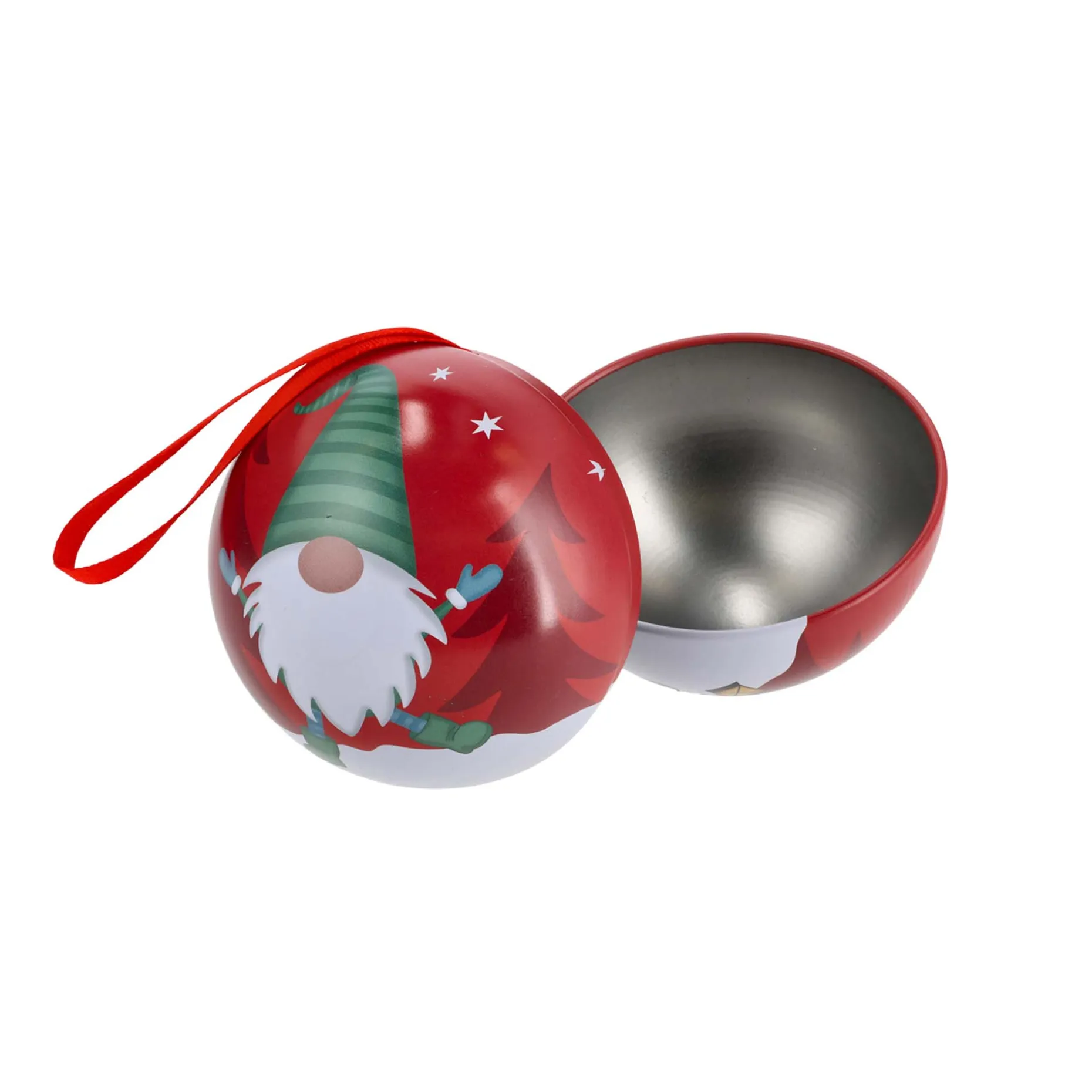 Befüllbare Dekokugel mit Wichtel-Motiv zum Anhängen, Dekorieren und Verschenken. Die rote Weihnachtskugel aus Metall ist ideal für kleine Süßigkeiten, Bonbons und Weihnachtsplätzchen, die in der zweiteiligen Kugel ihren Platz finden. Dafür einfach den Weihnachtsanhänger aufdrehen, befüllen und wieder verschließen.