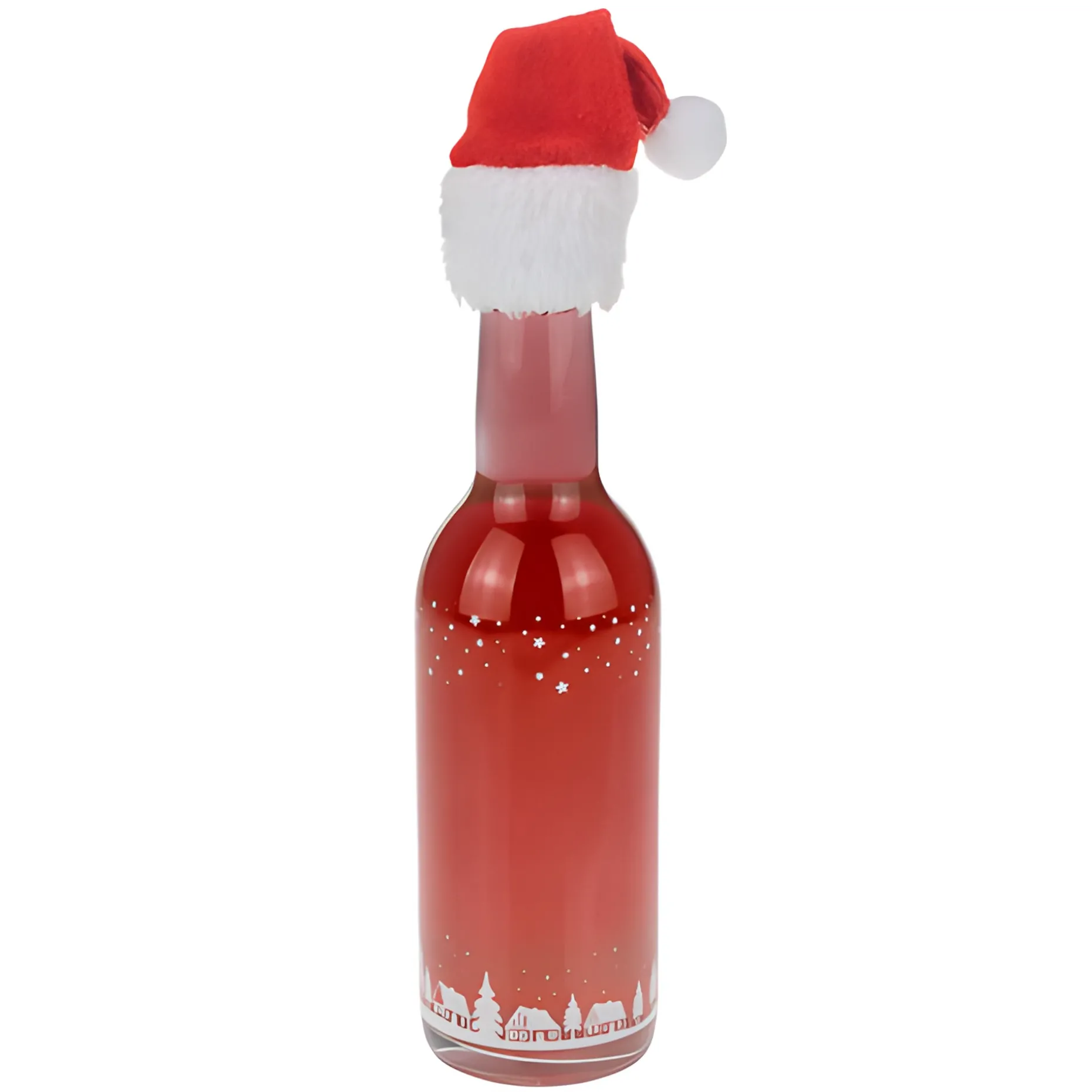Hübsche Weihnachtsmütze mit Plüsch für schmale Flaschenhälse. Das rote Mützchen mit der weißen Bommel und dem flauschigen Bund ist perfekt zum Dekorieren von Likör-, Saft- und Weinflaschen, wo sie einfach über den Verschluss von Flaschen gestülpt werden kann. So bekommt das Selbstgemachte den letzten weihnachtlichen Schliff und ist bereit, verschenkt zu werden.