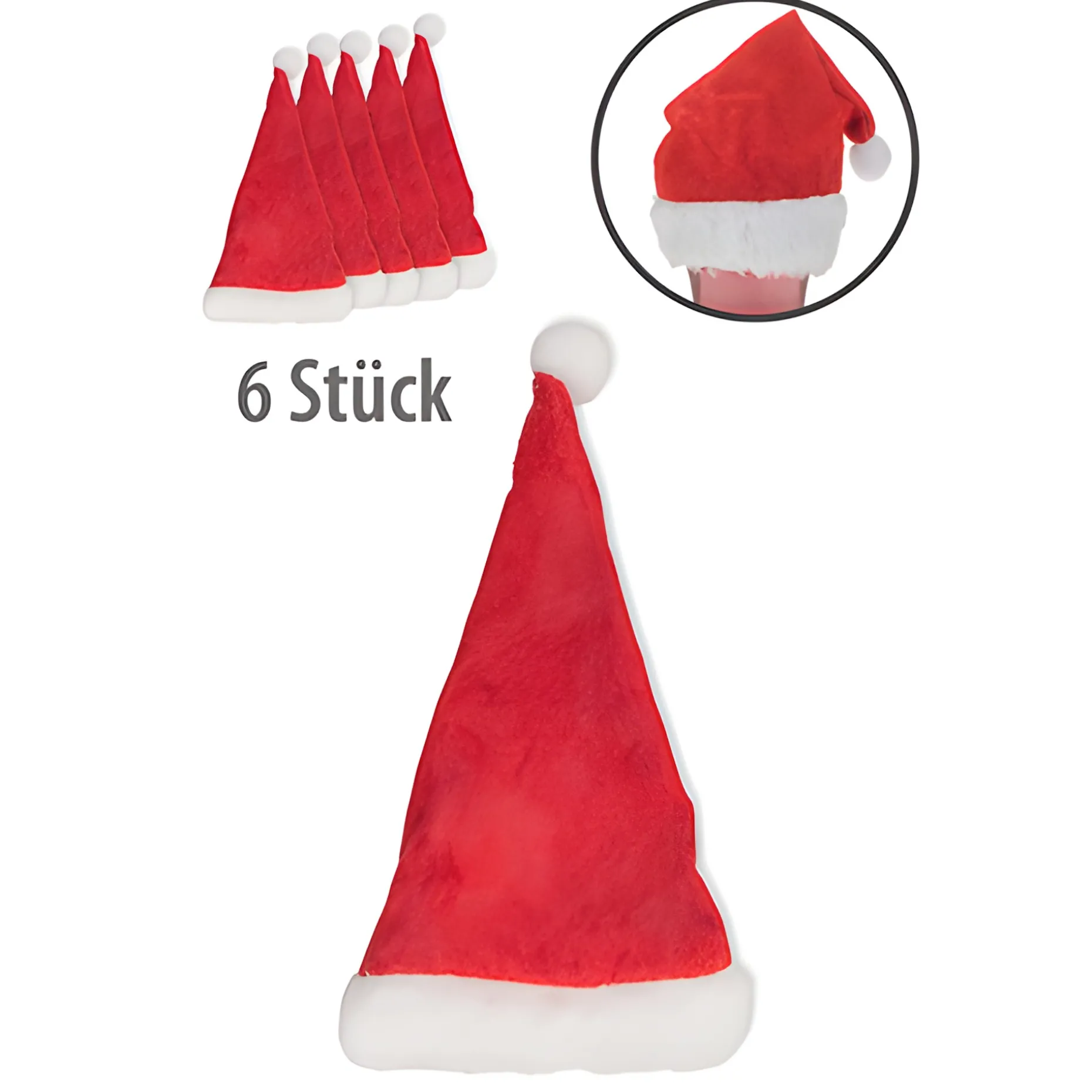 Im Lieferumfang sind gleich 6 rot-weiße Mützen enthalten.
